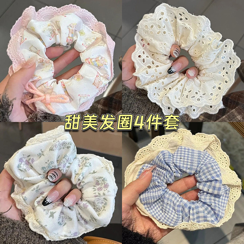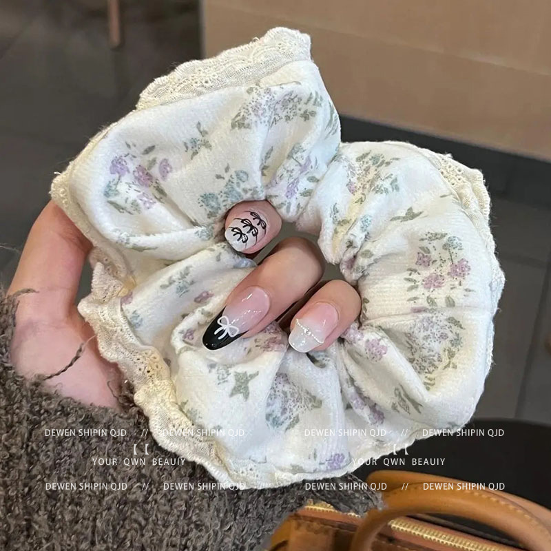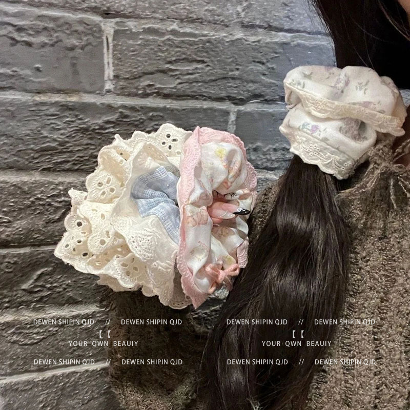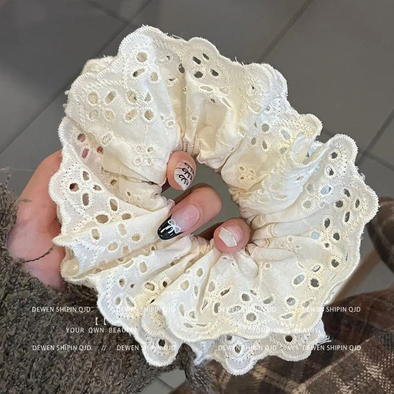 774# white floral lace hair ring
