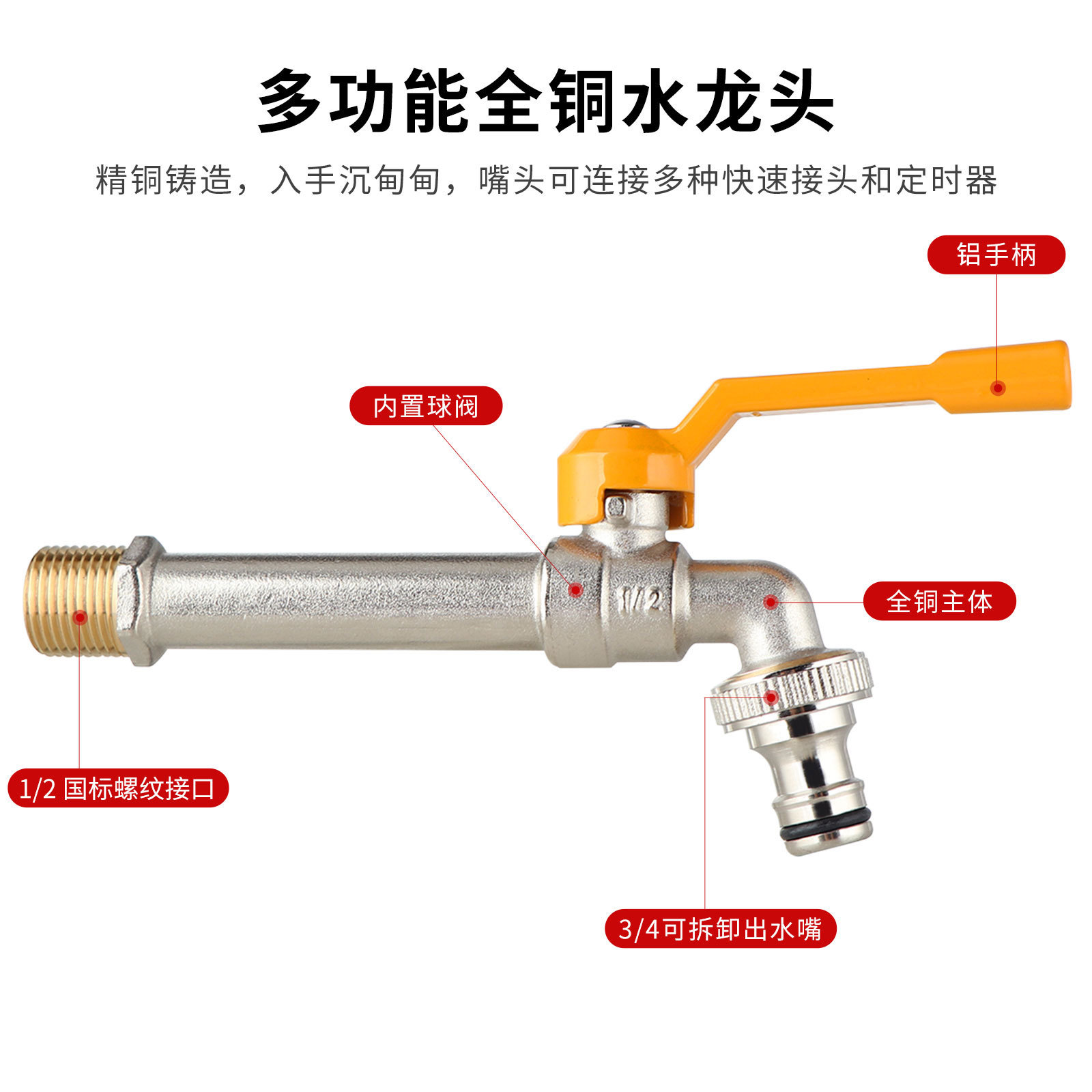 1/2*3/4 lengthened intrinsic color of copper red aluminum handle single head