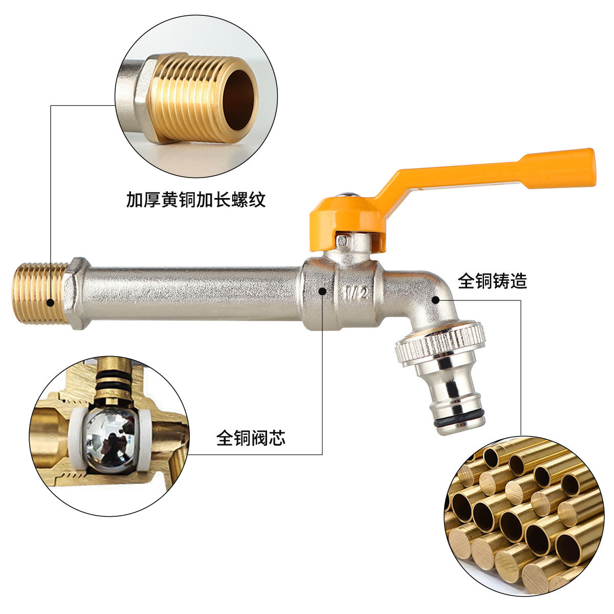 1/2*3/4 lengthened intrinsic color of copper yellow aluminum handle single head