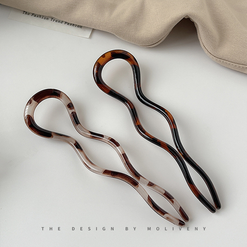 c3# red brown leopard print-u-shaped hair plug