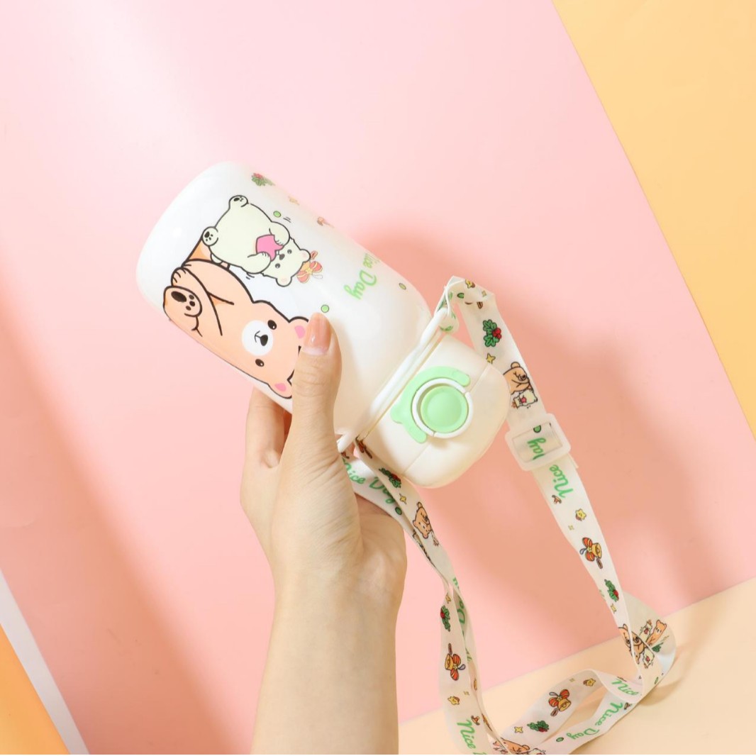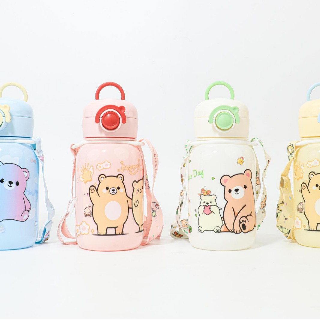 good-looking children's large capacity white high temperature resistant cup with straw bear kettle household cups wholesale 650ml