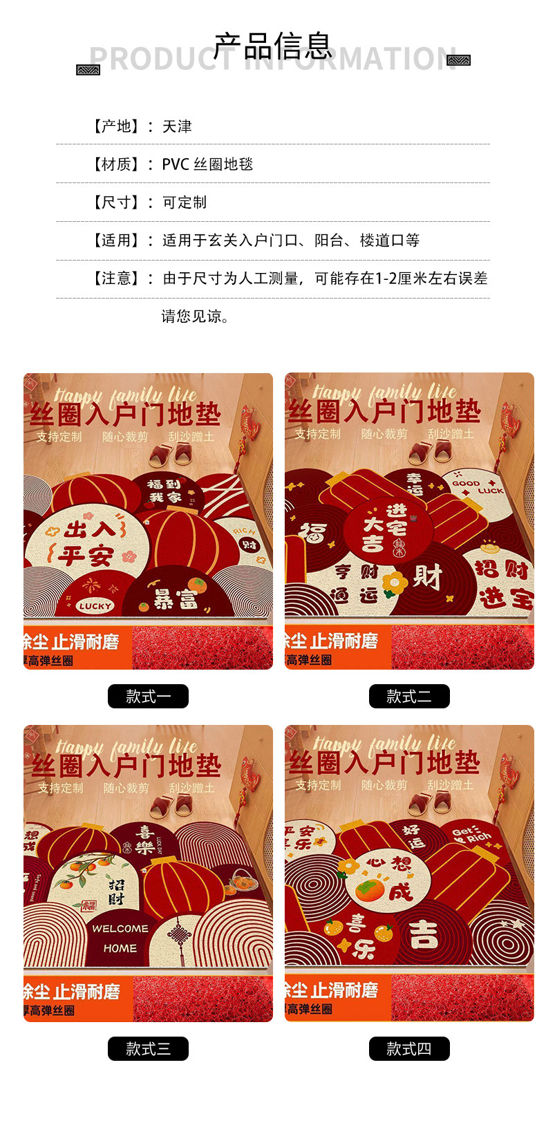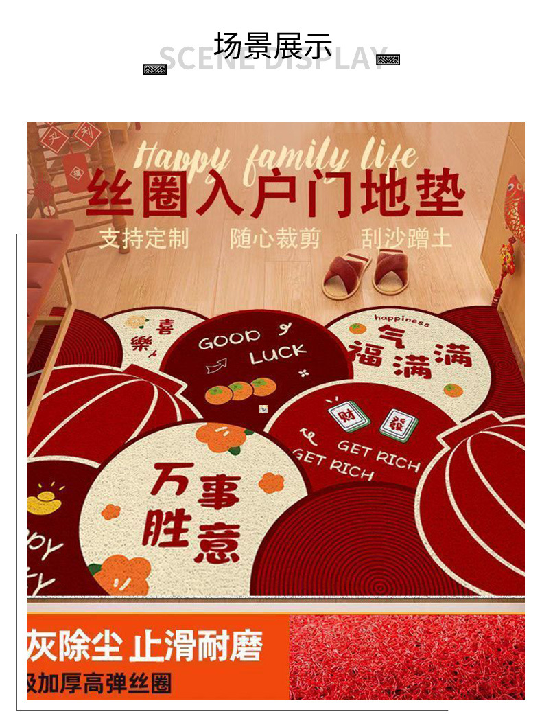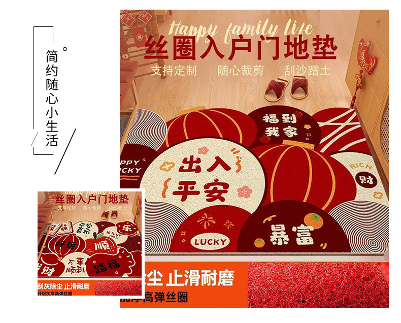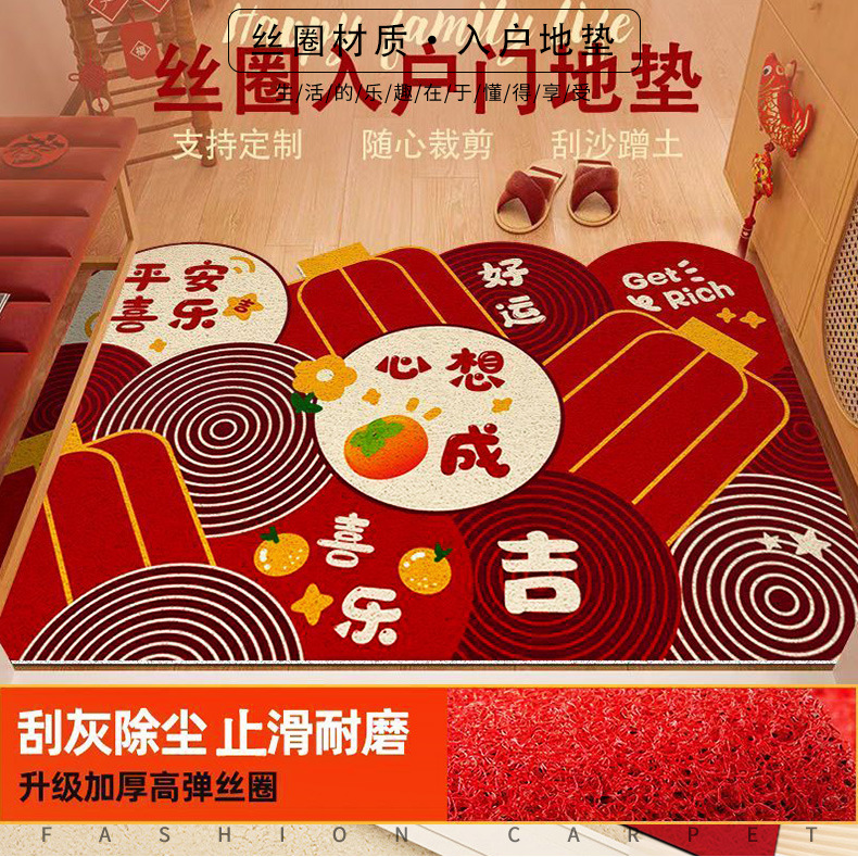 new chinese style festive entrance door mat indoor door cutting stain-resistant wire ring foot mat household easy-to-care foot mat