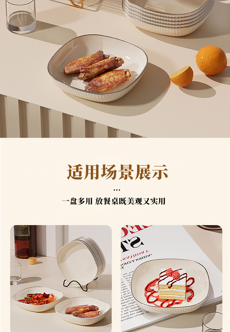silver edge cream porcelain white-8 pack + black rack