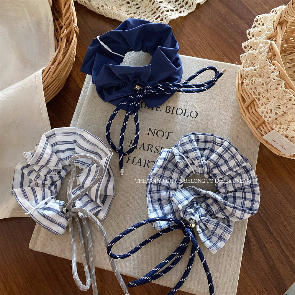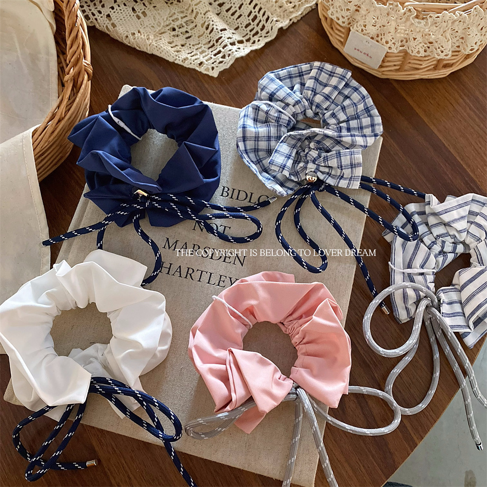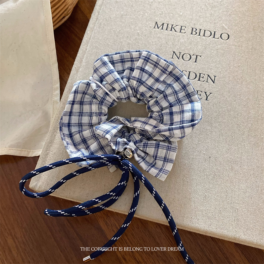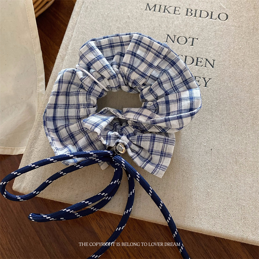 plaid college style bow hair ring large intestine ring