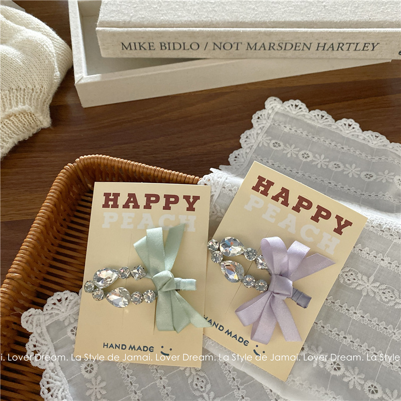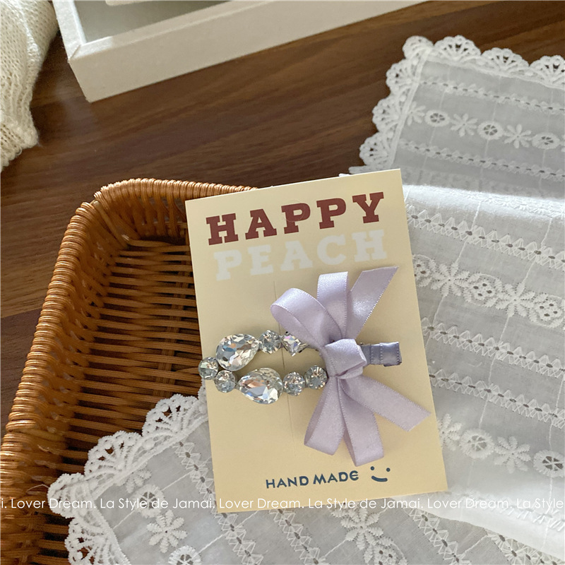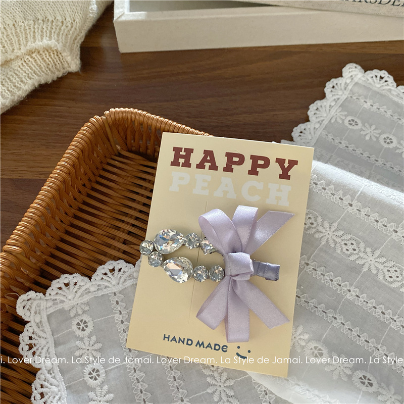 purple bow transparent crystal duckbill clip