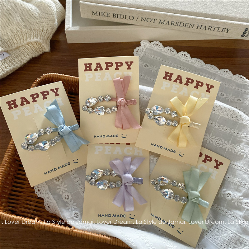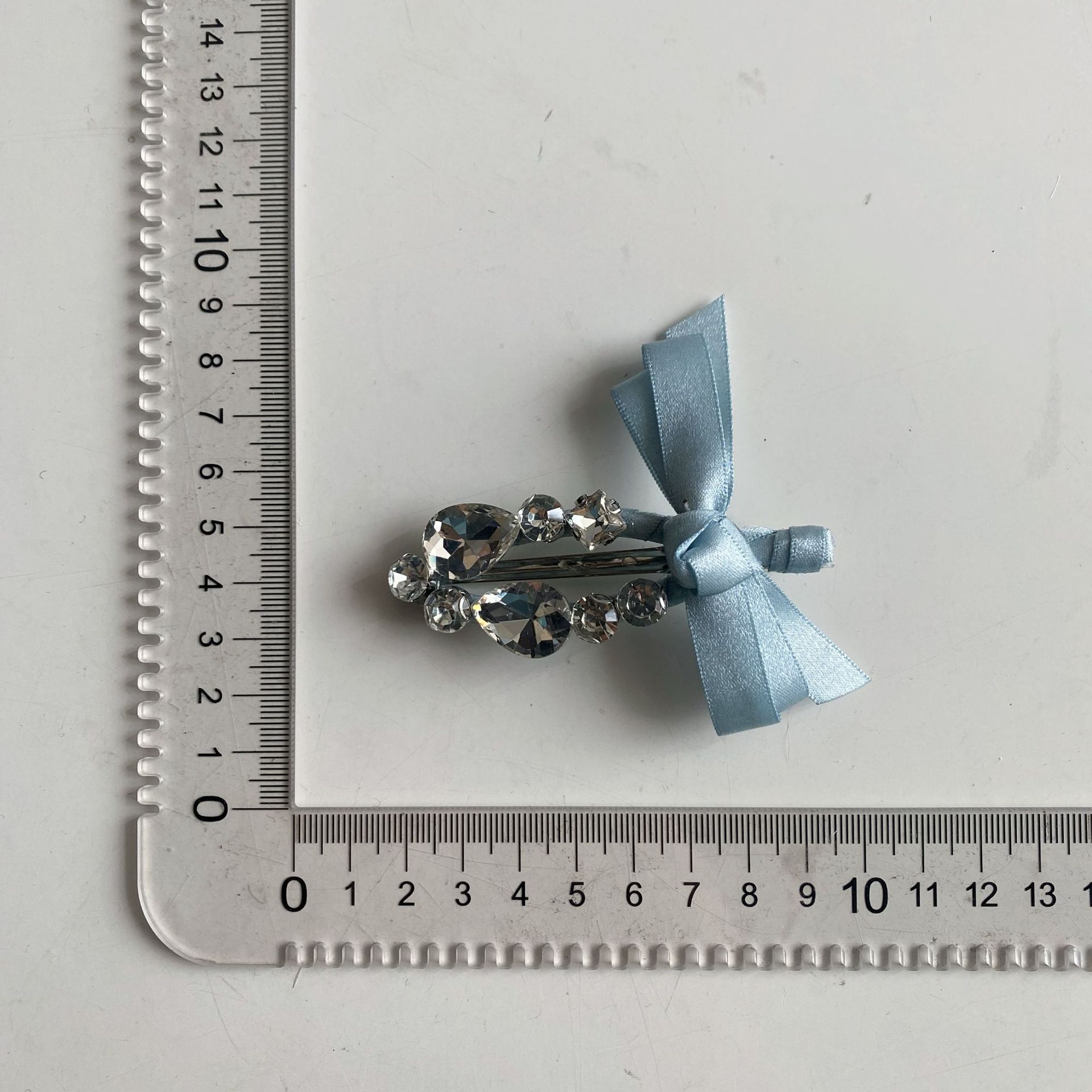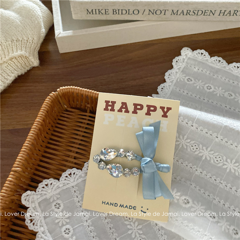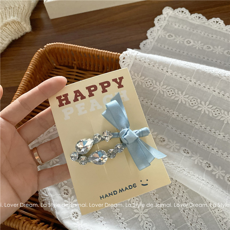 blue bow transparent crystal duckbill clip