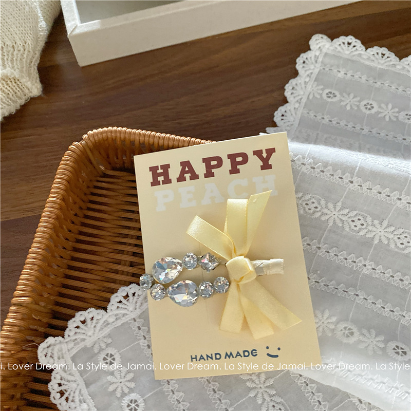 yellow bow transparent crystal duckbill clip