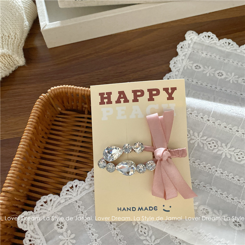 pink bow transparent crystal duckbill clip