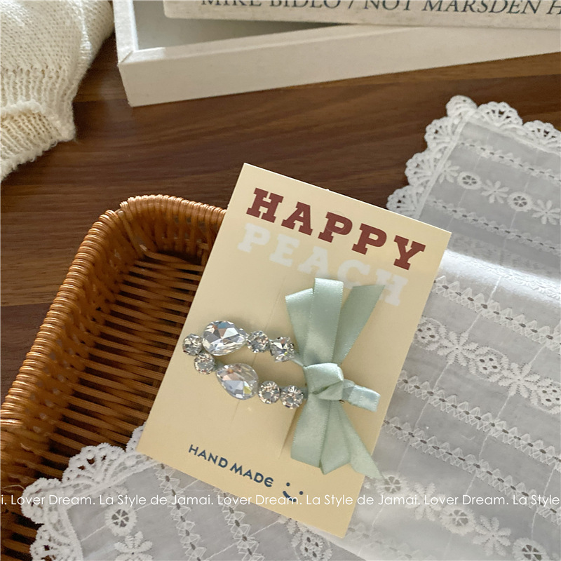 green bow transparent crystal duckbill clip