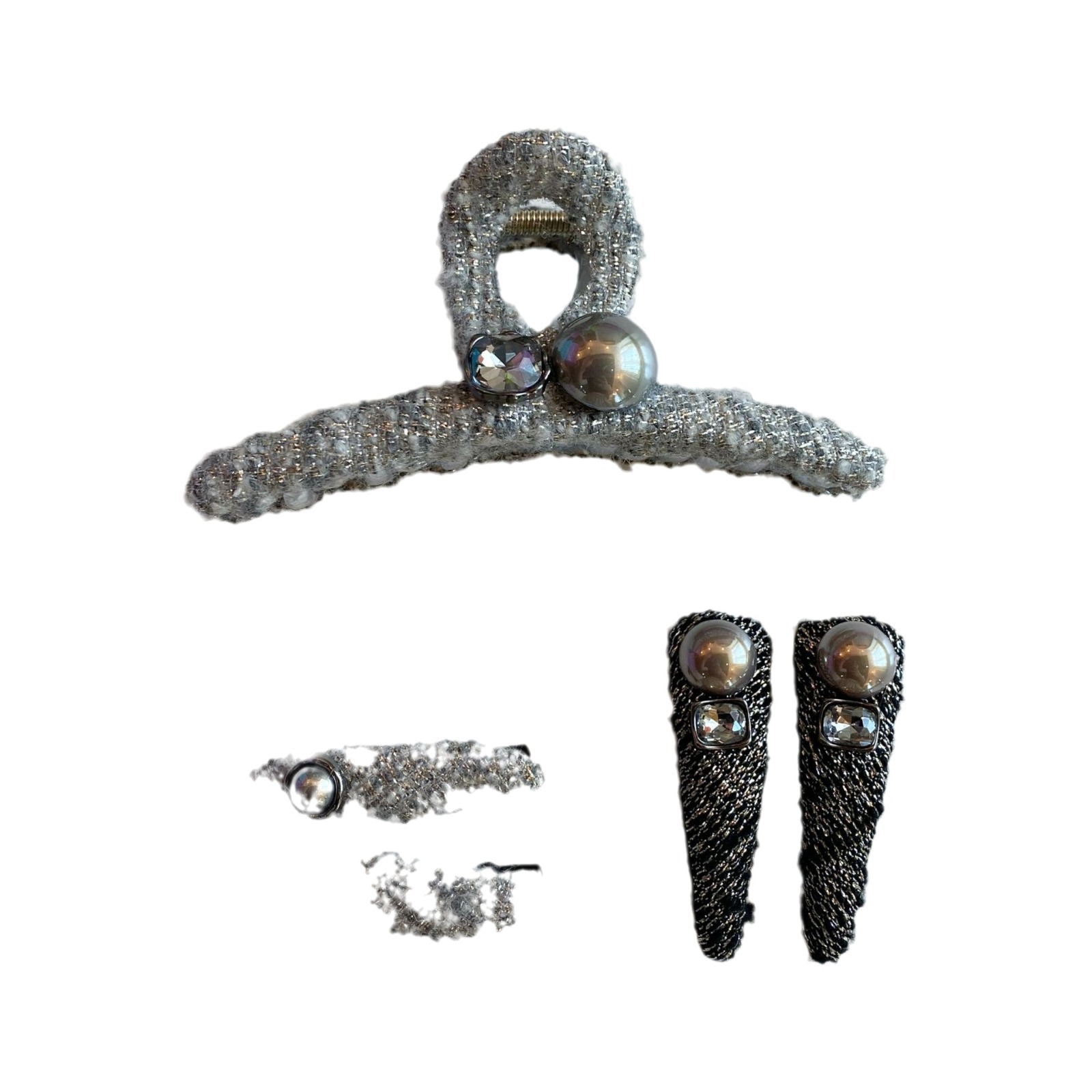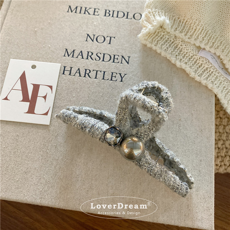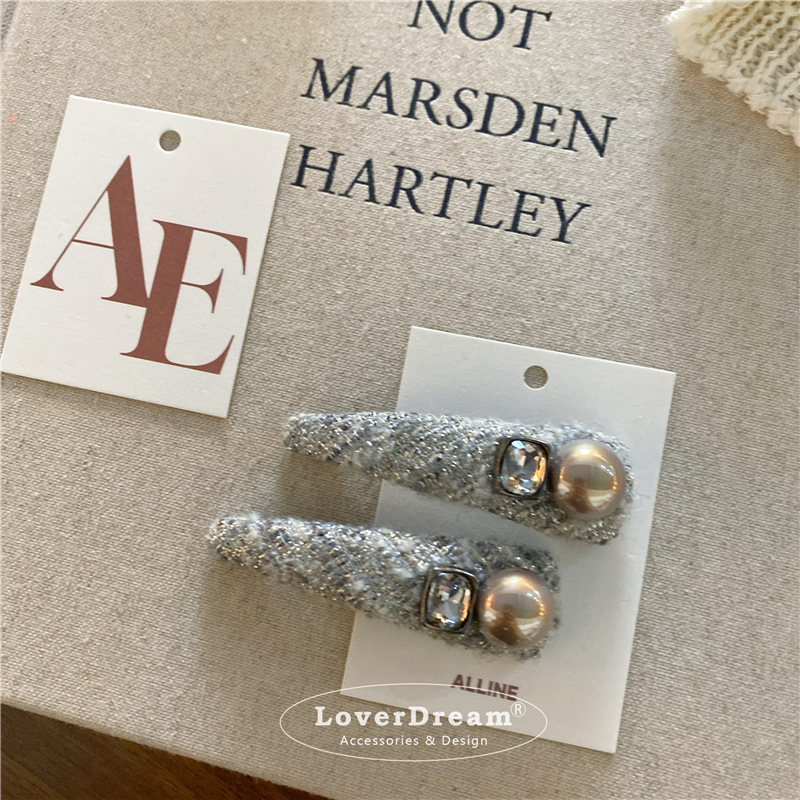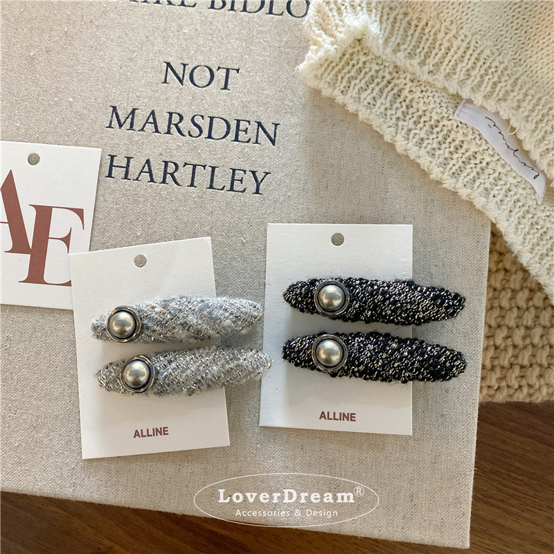 silver bright silk pearl oval duckbill clip