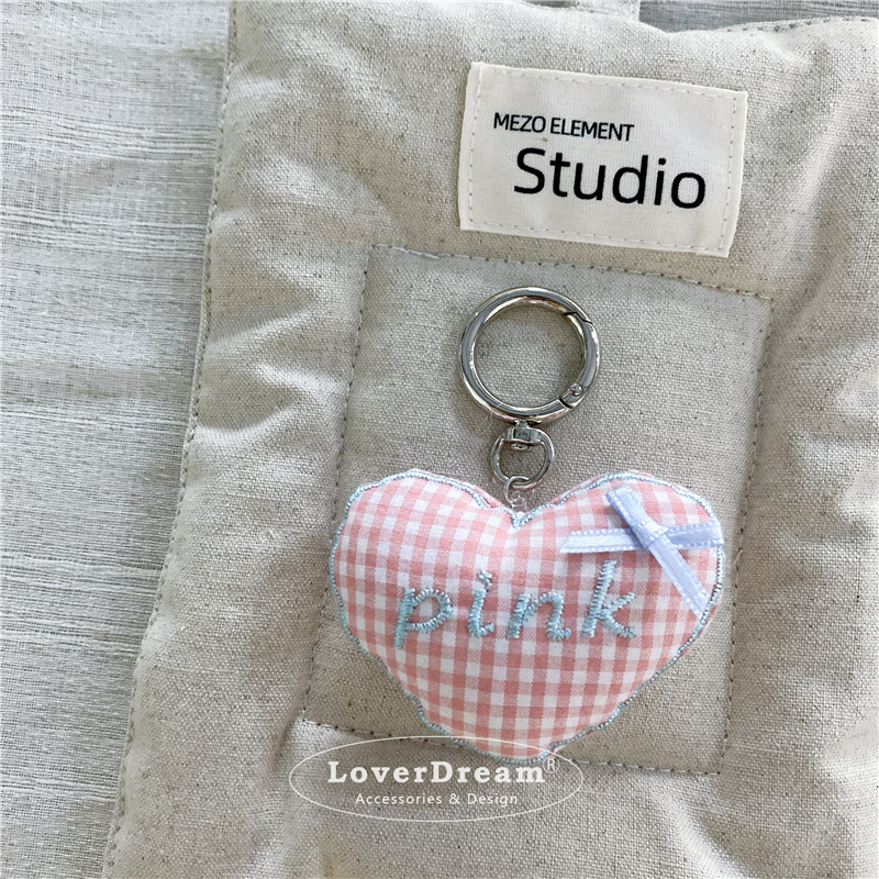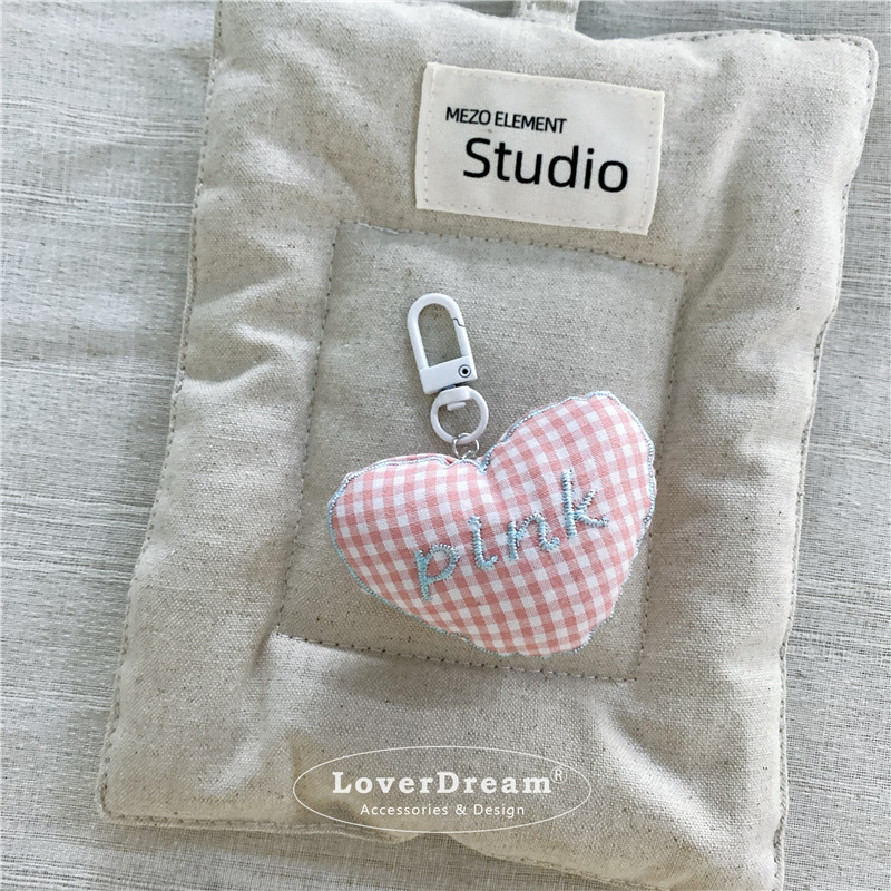 pink english plaid love white pendant