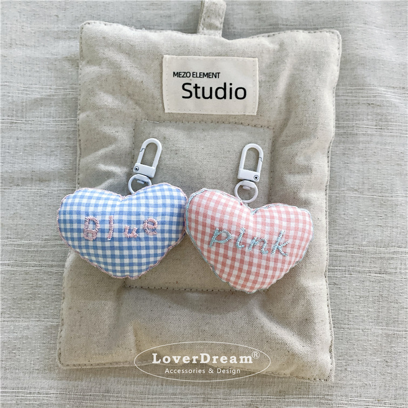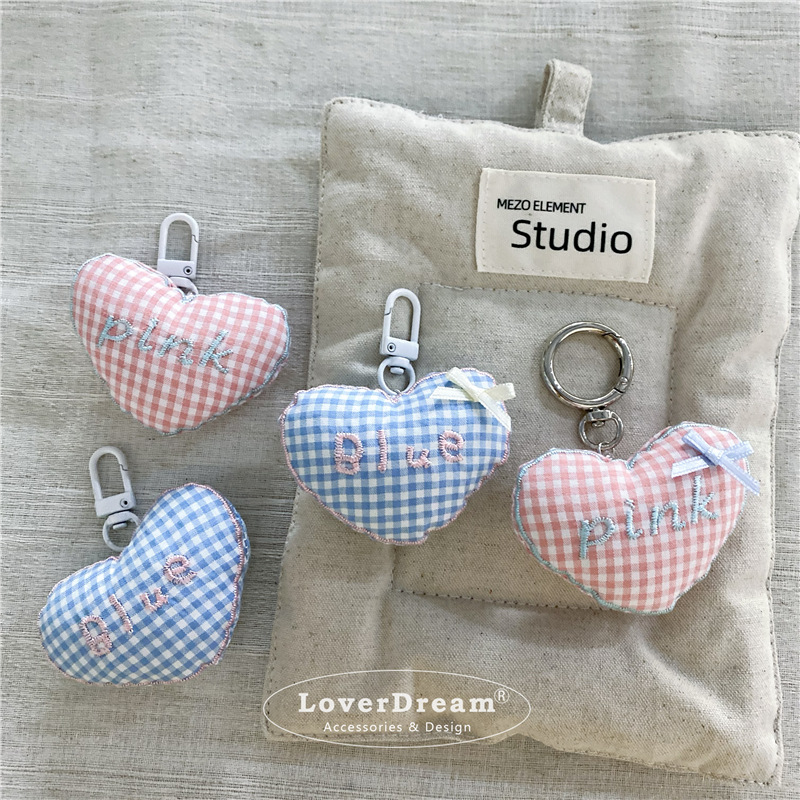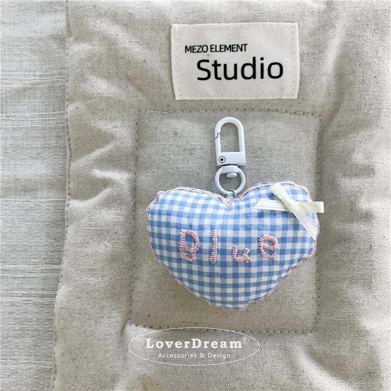 blue english plaid love heart bow tie white pendant