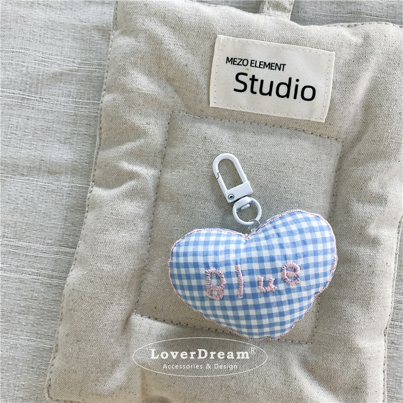 blue english plaid love white pendant