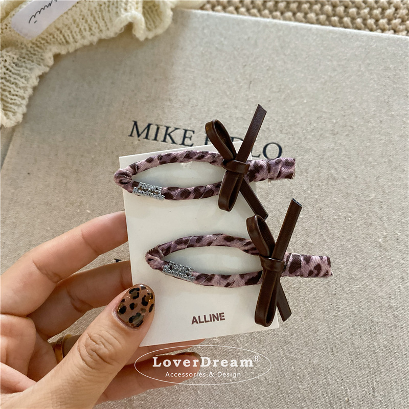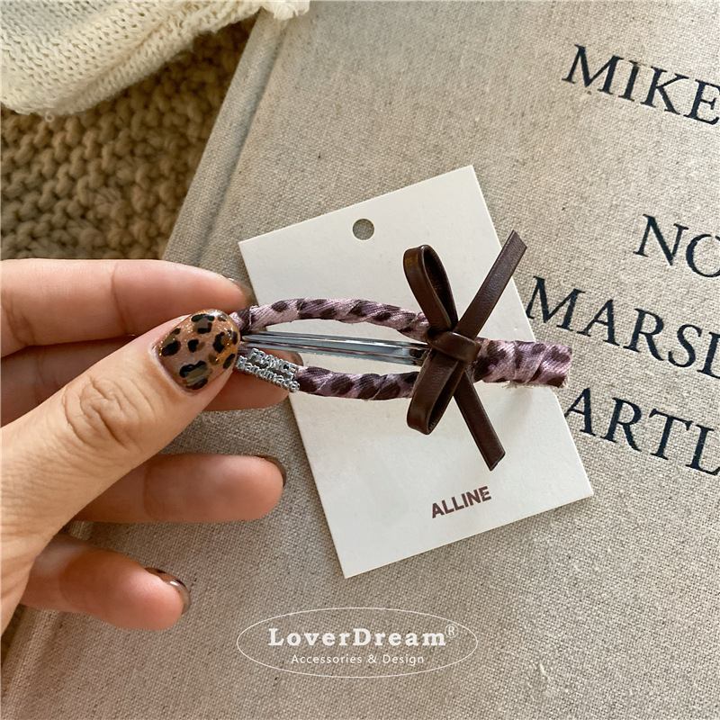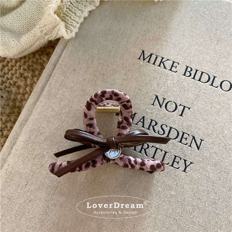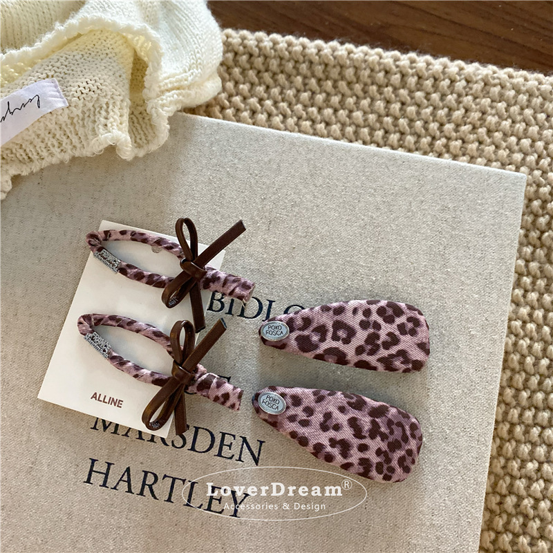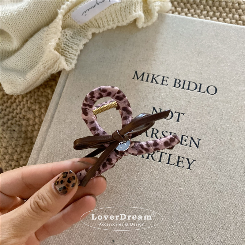 pink leopard bow english logo hollow duckbill clip