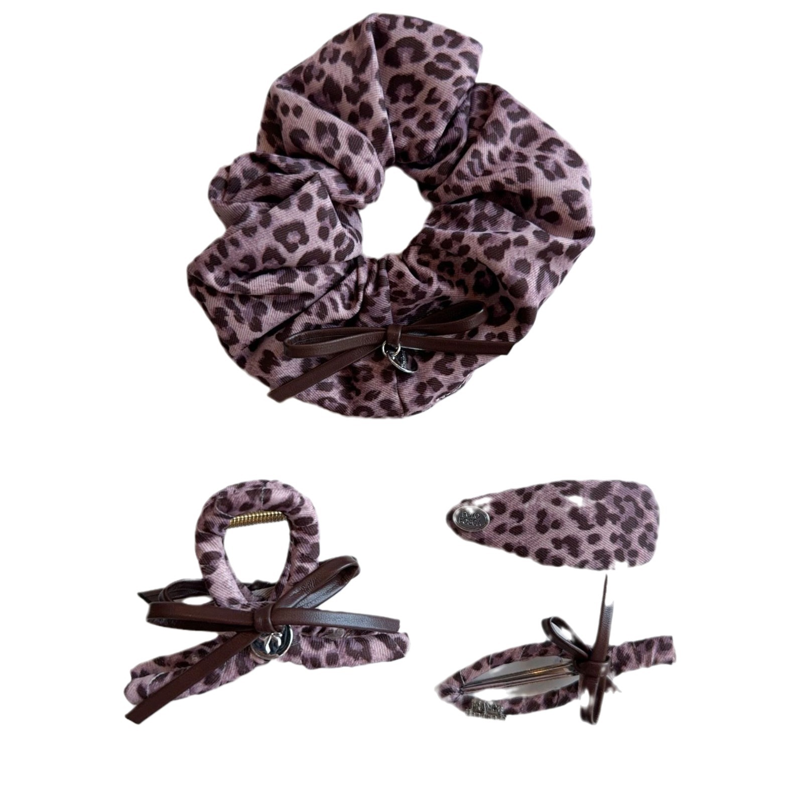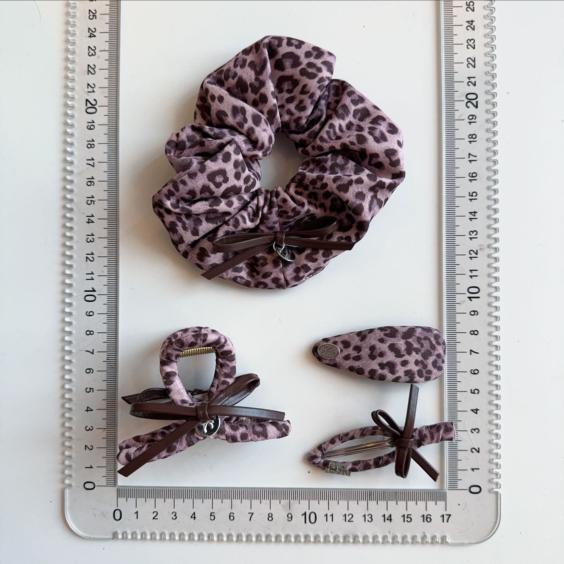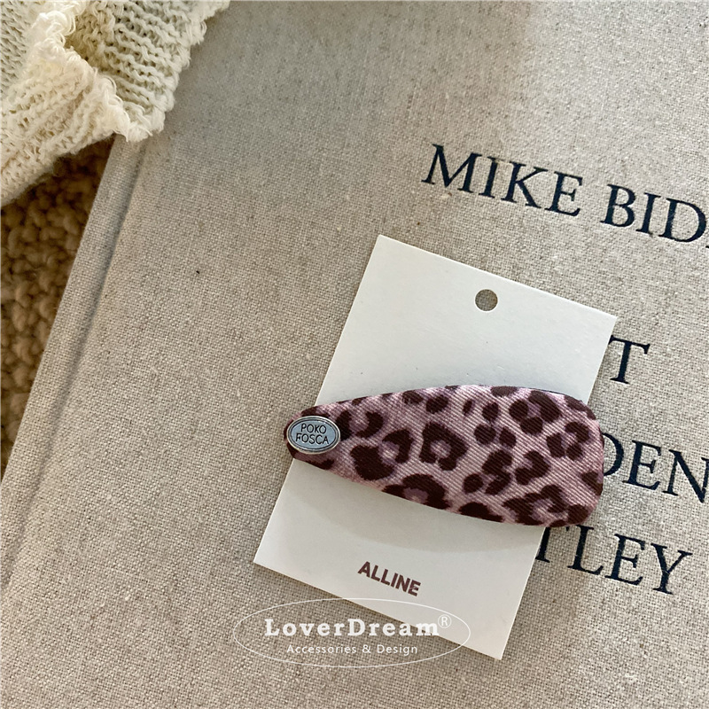 pink leopard bow english logo hollow duckbill clip