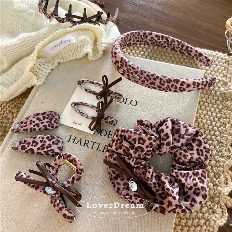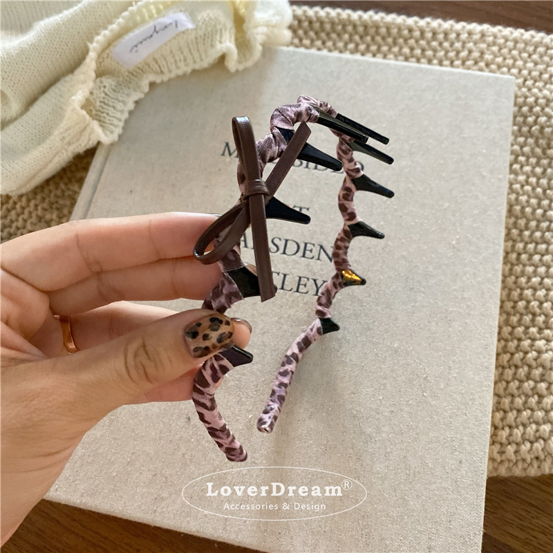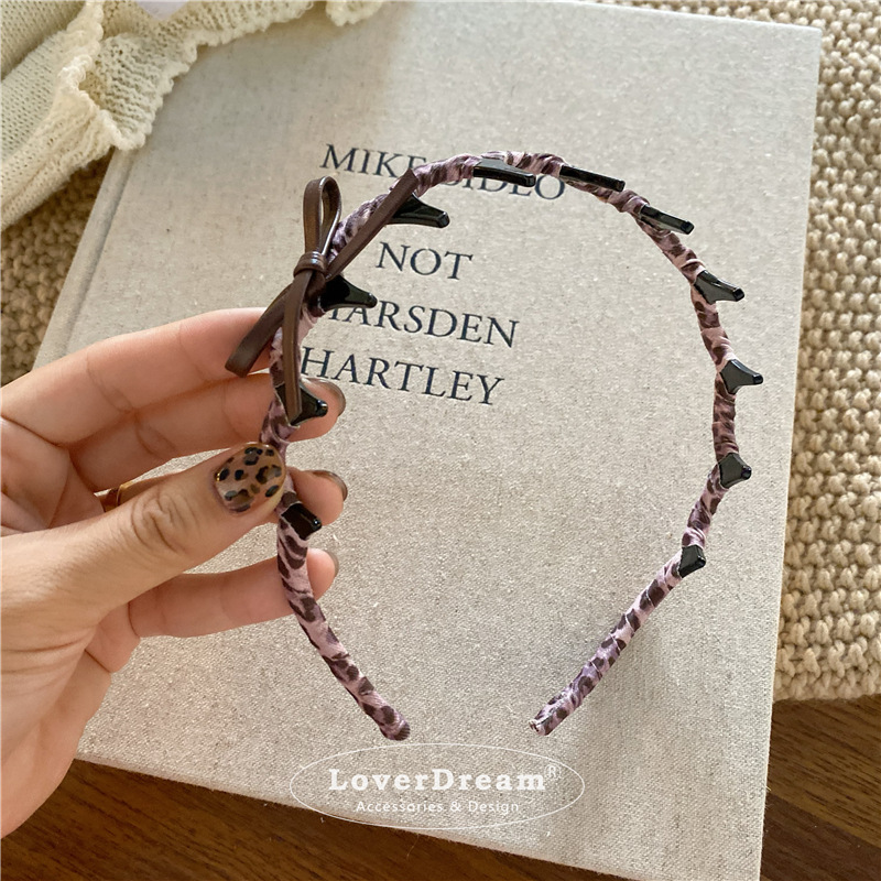 pink leopard bow hair band