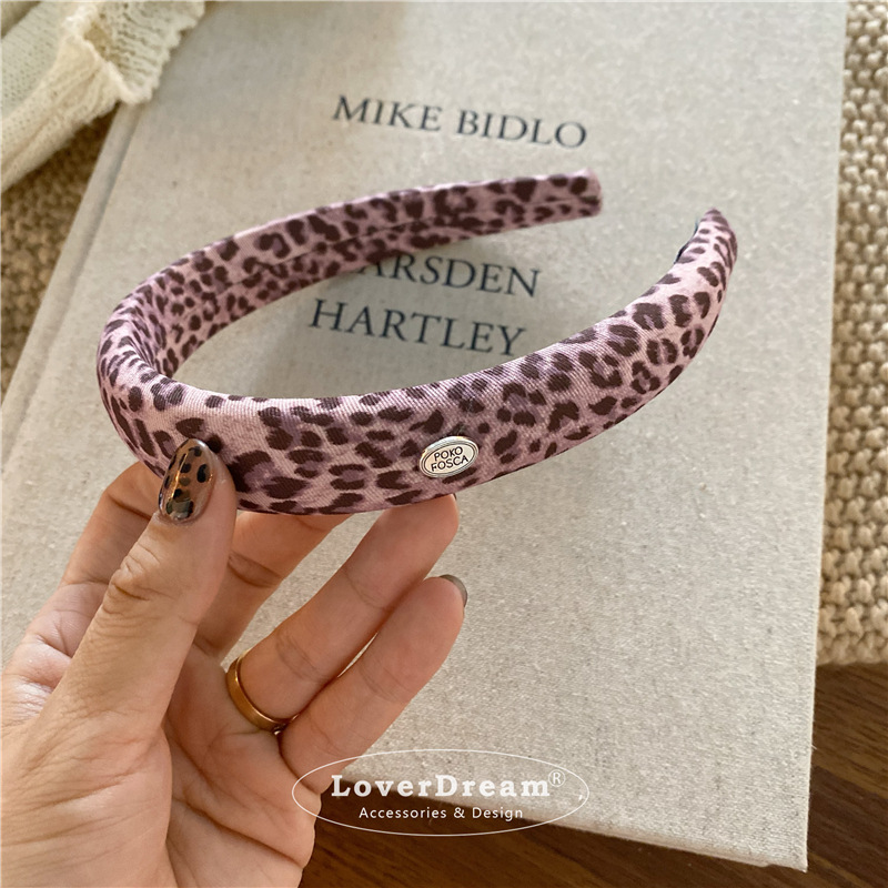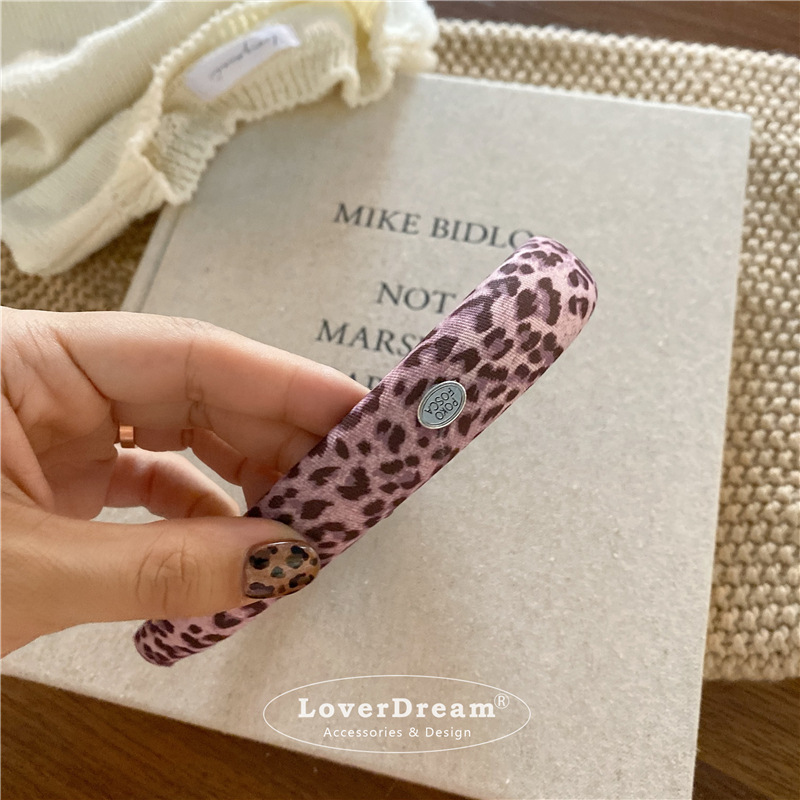 pink leopard oval logo sponge headband