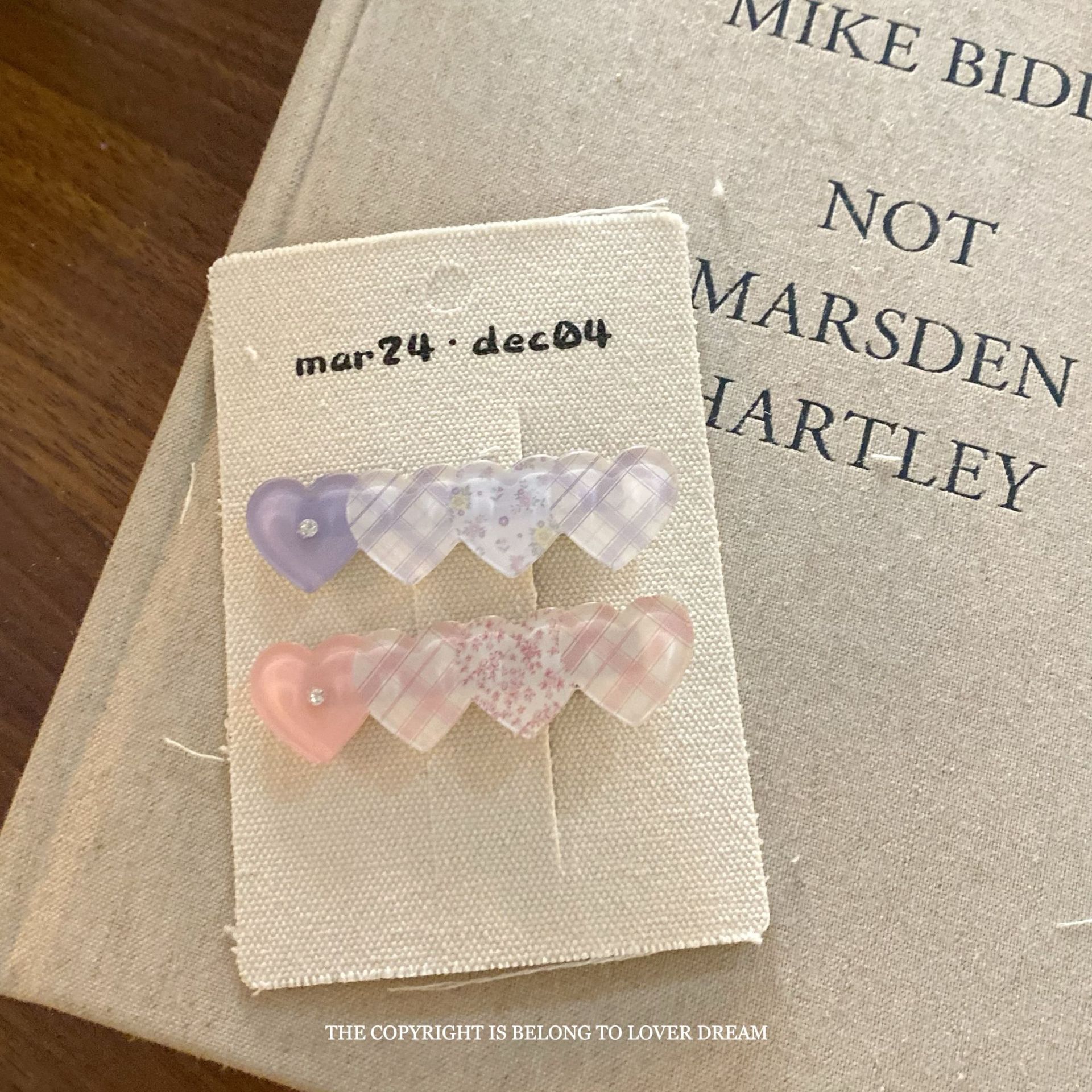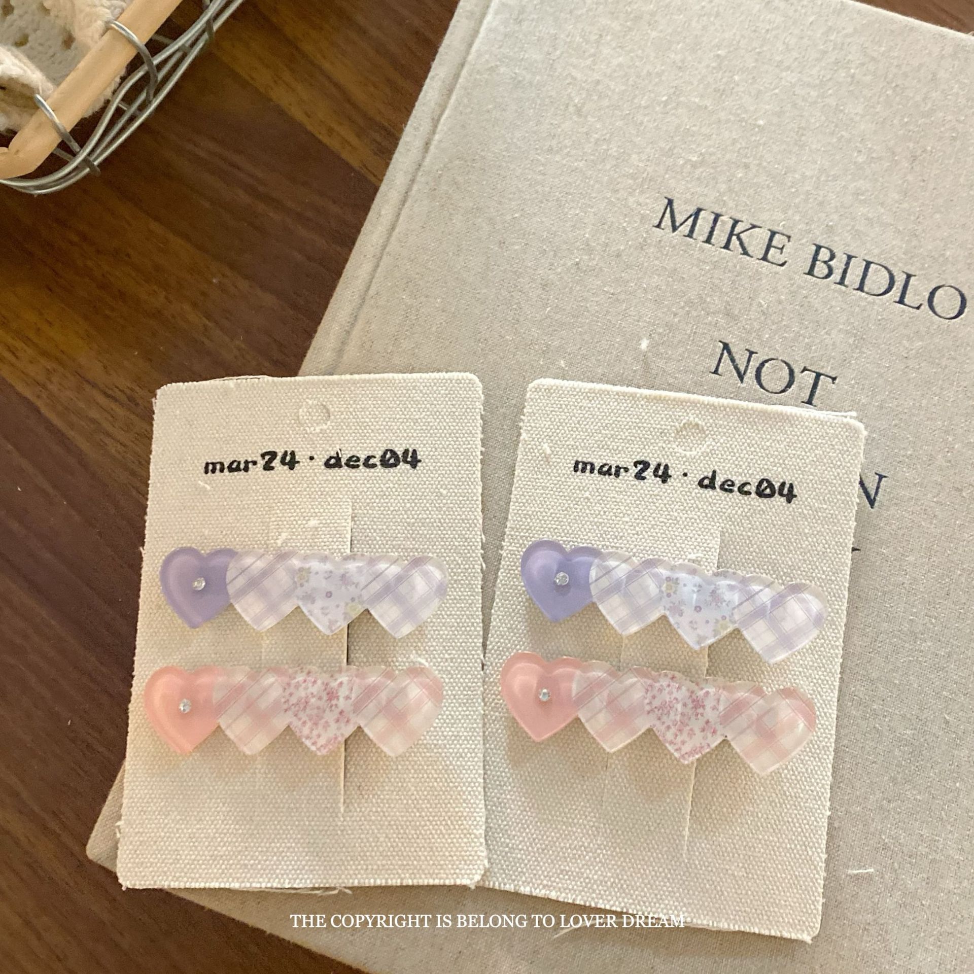 pink purple heart color acrylic duckbill clip suit
