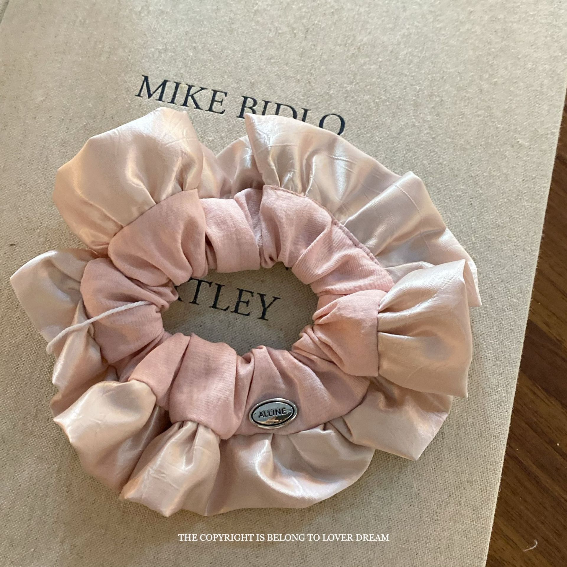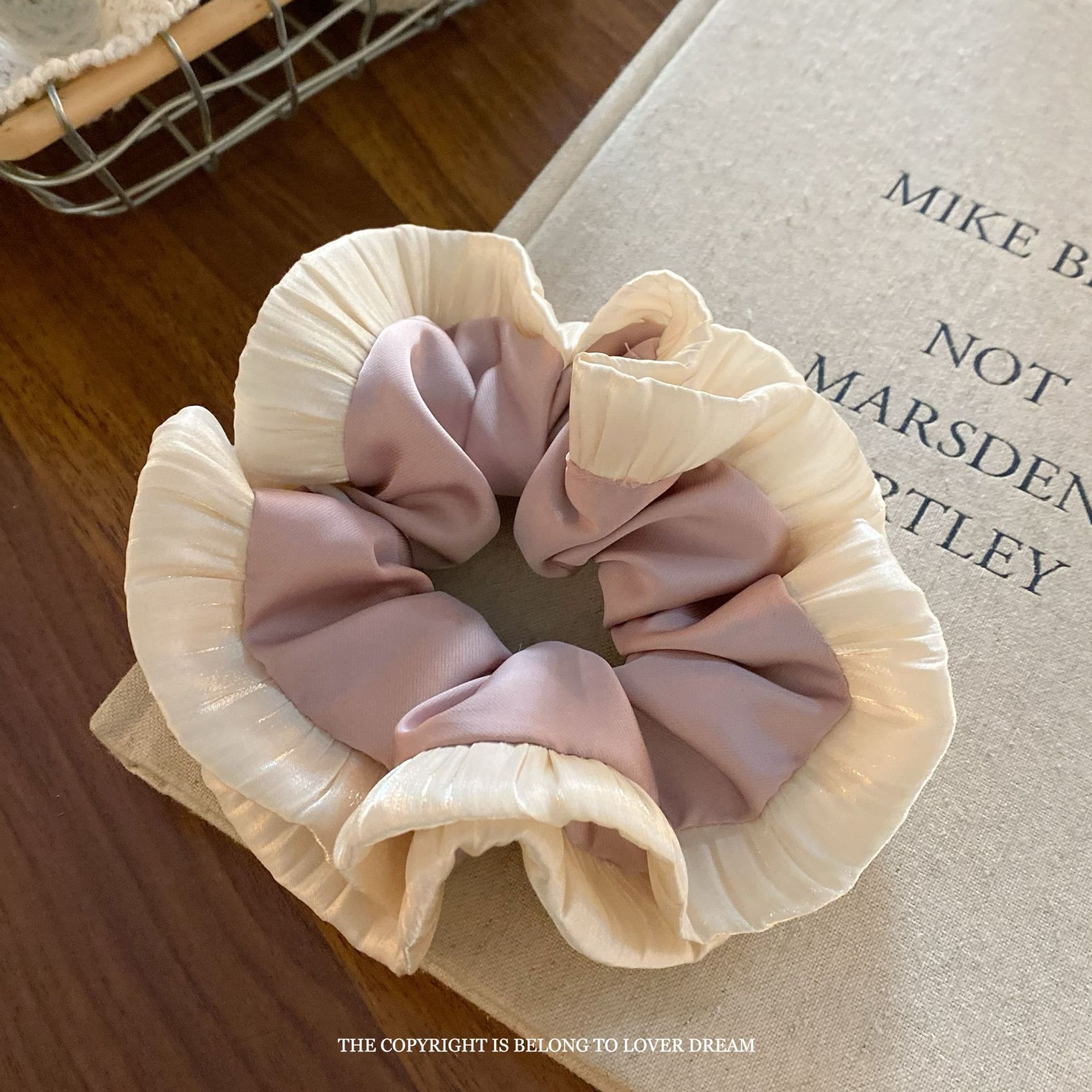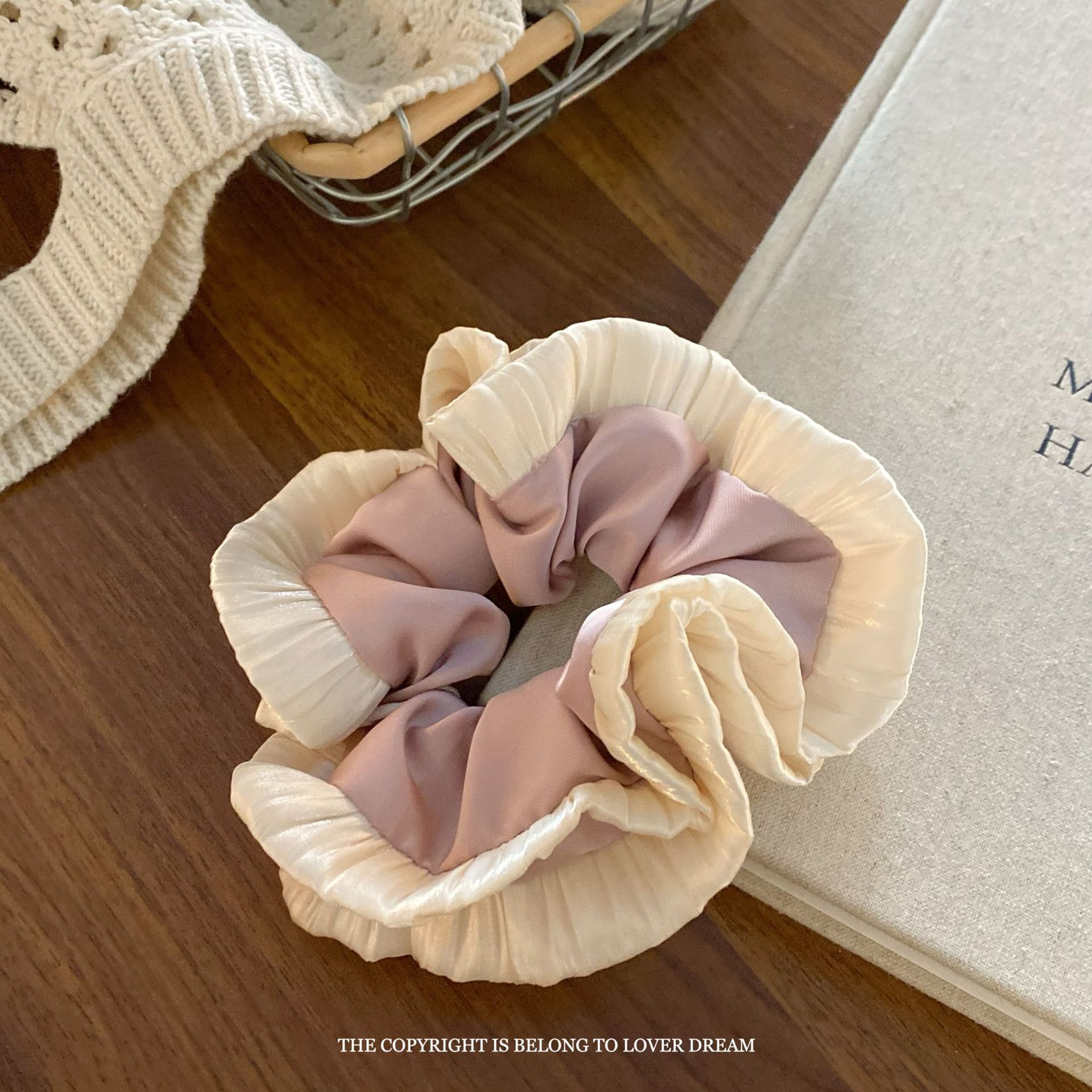 pink satin double-layer edge large intestine ring hair ring