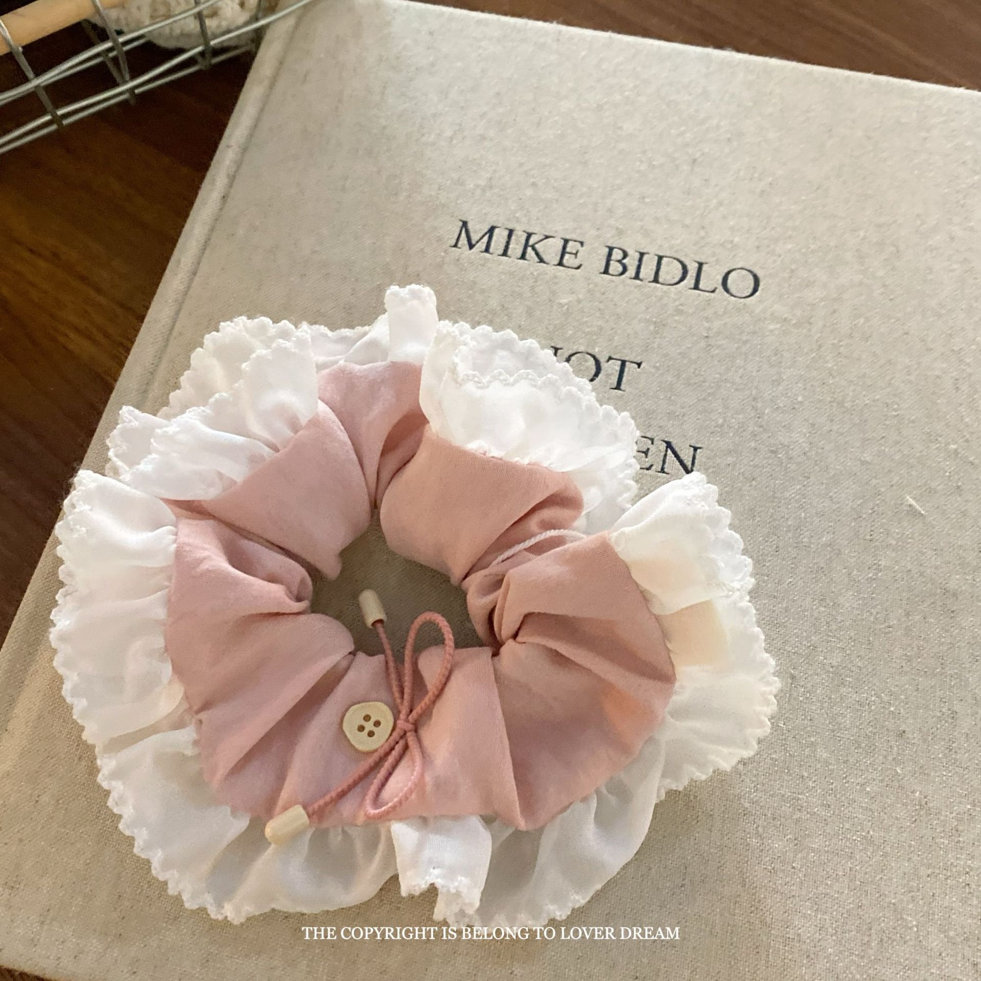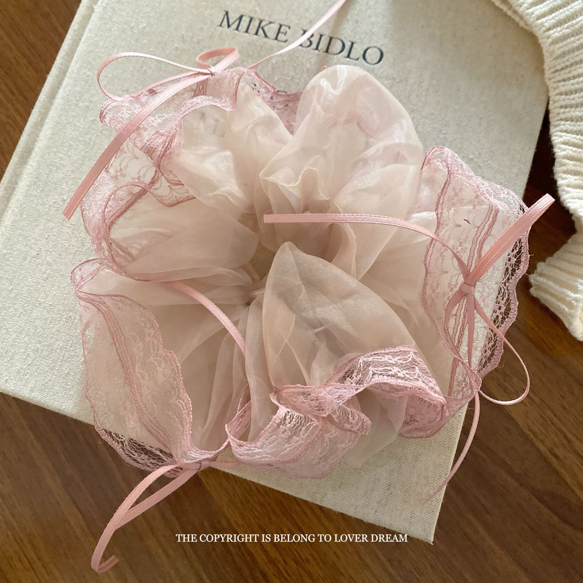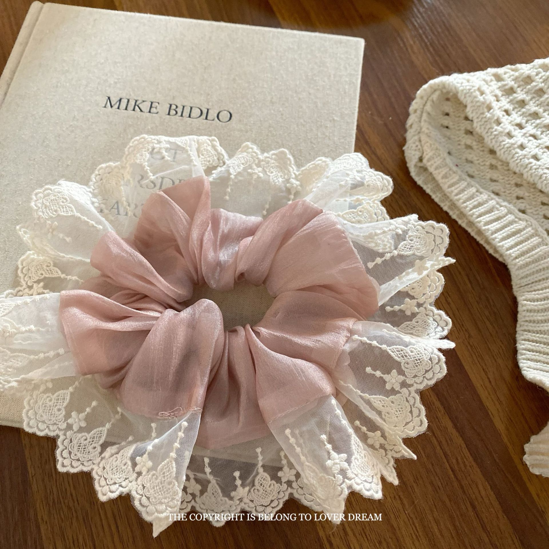 korean pink mesh large lace large intestine ring hair band