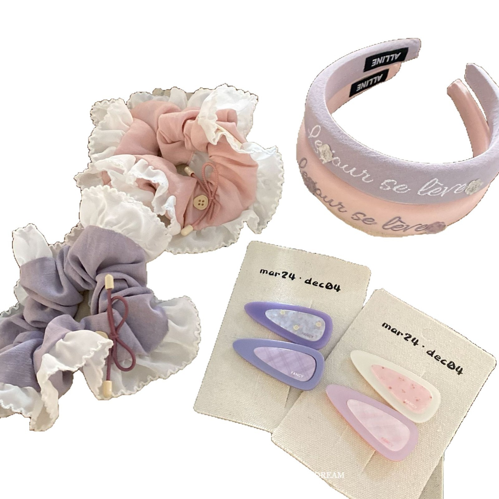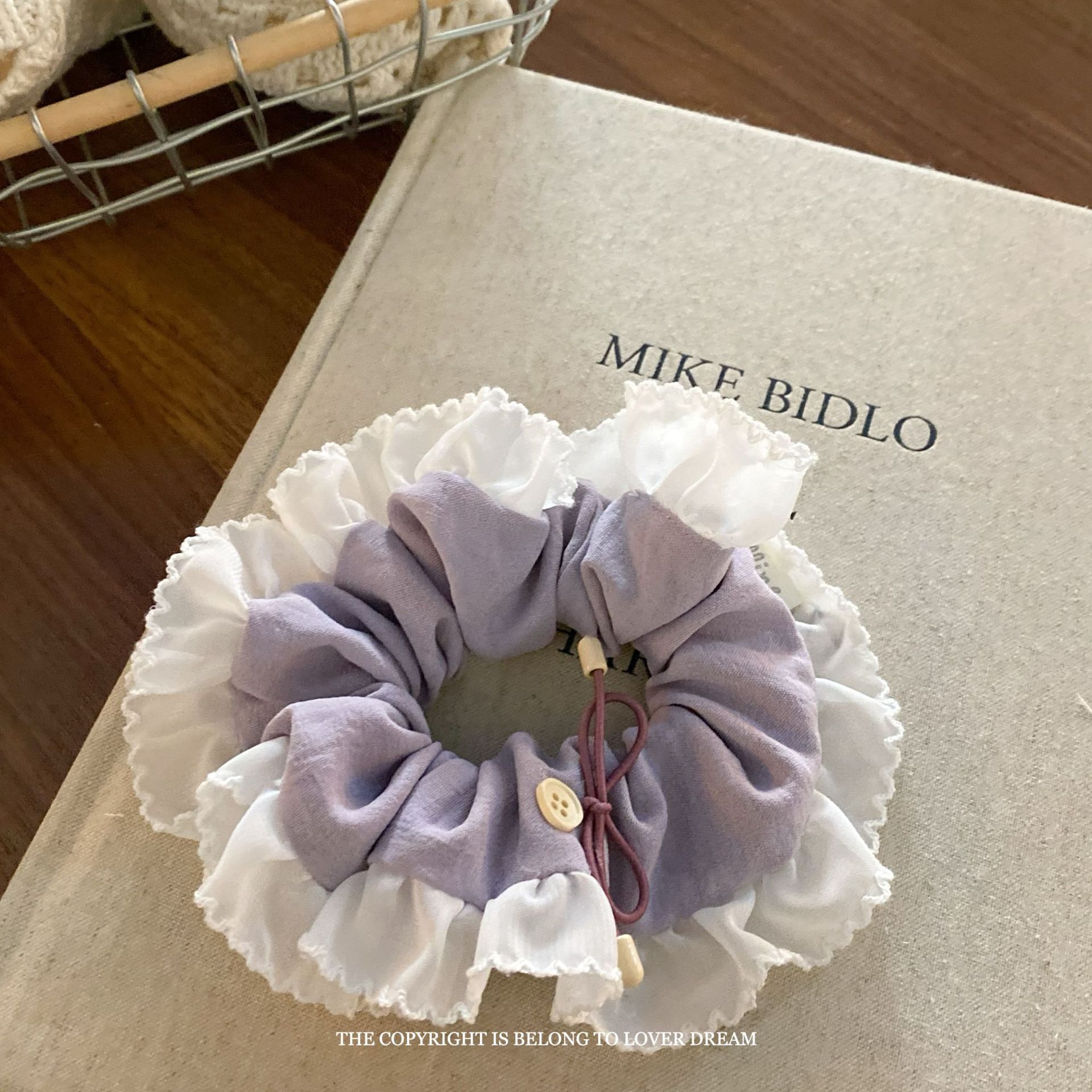 purple bow button white lace flower hair ring large intestine ring