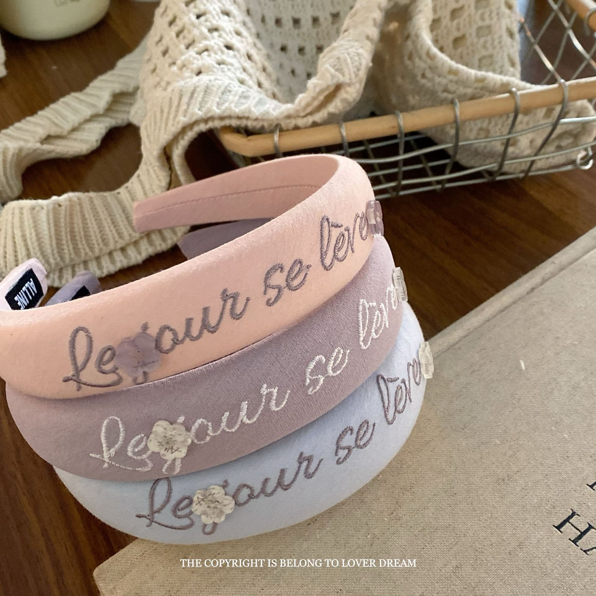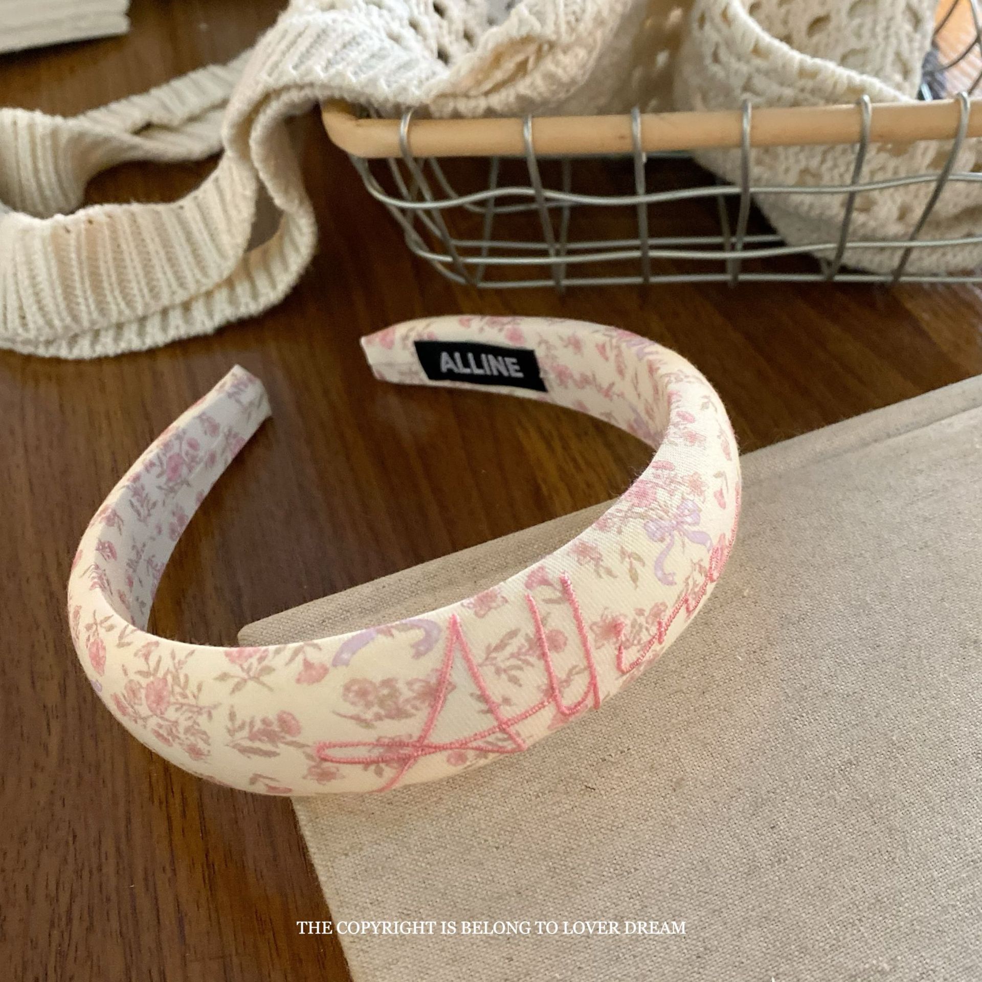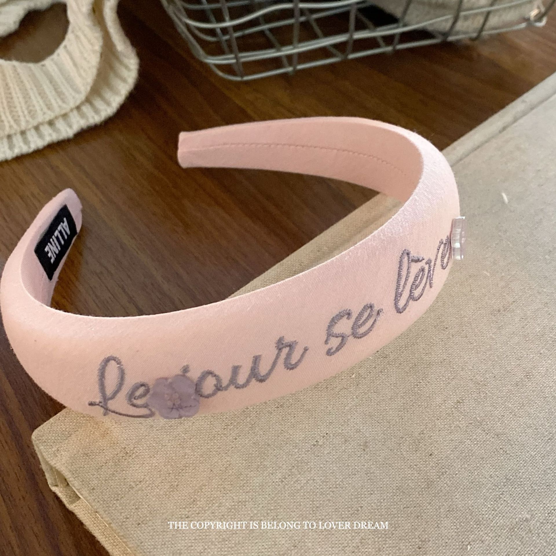 pink letters floral hair band