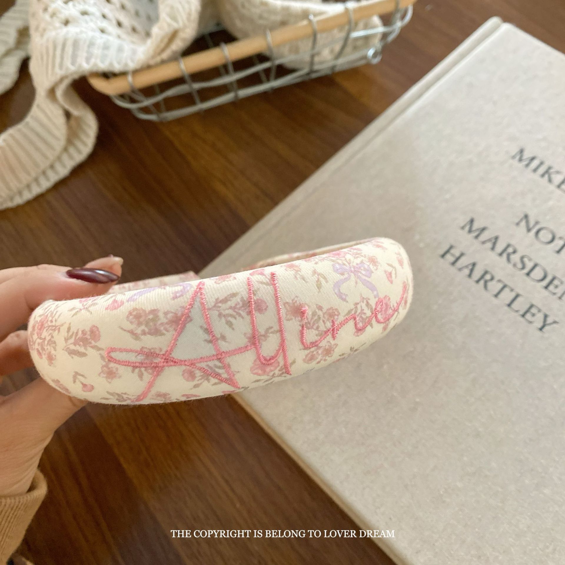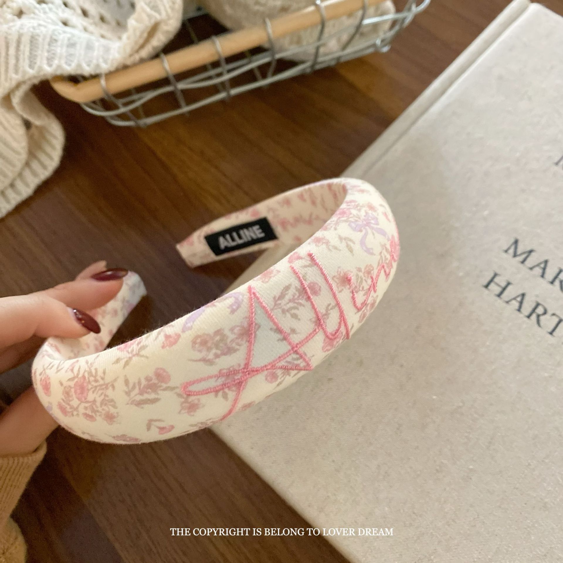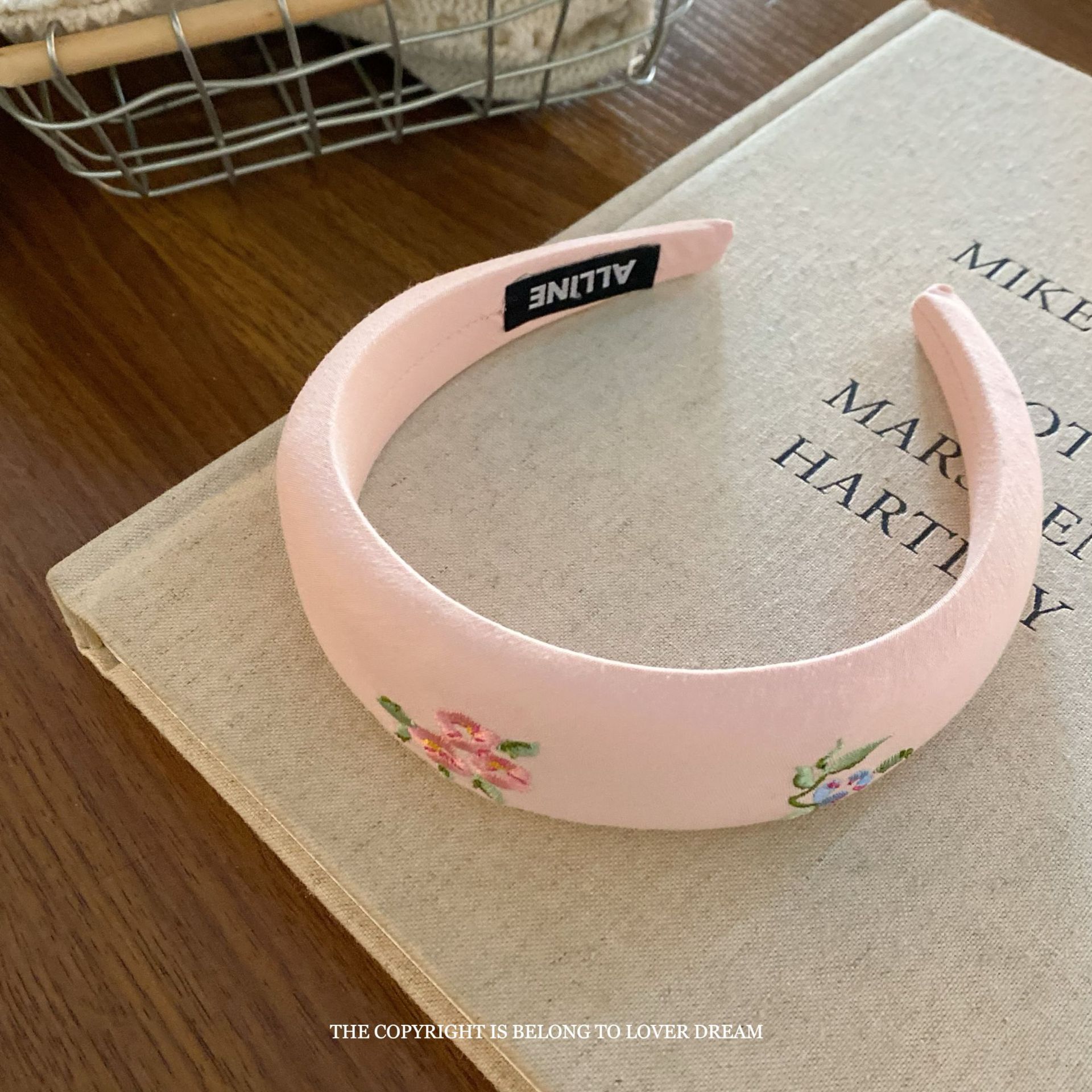 pink letters floral hair band