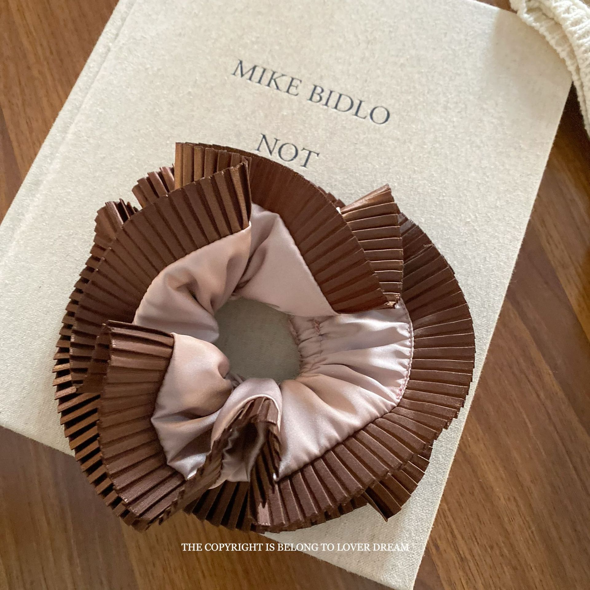brown wooden ear pink double layer large intestine ring hair ring