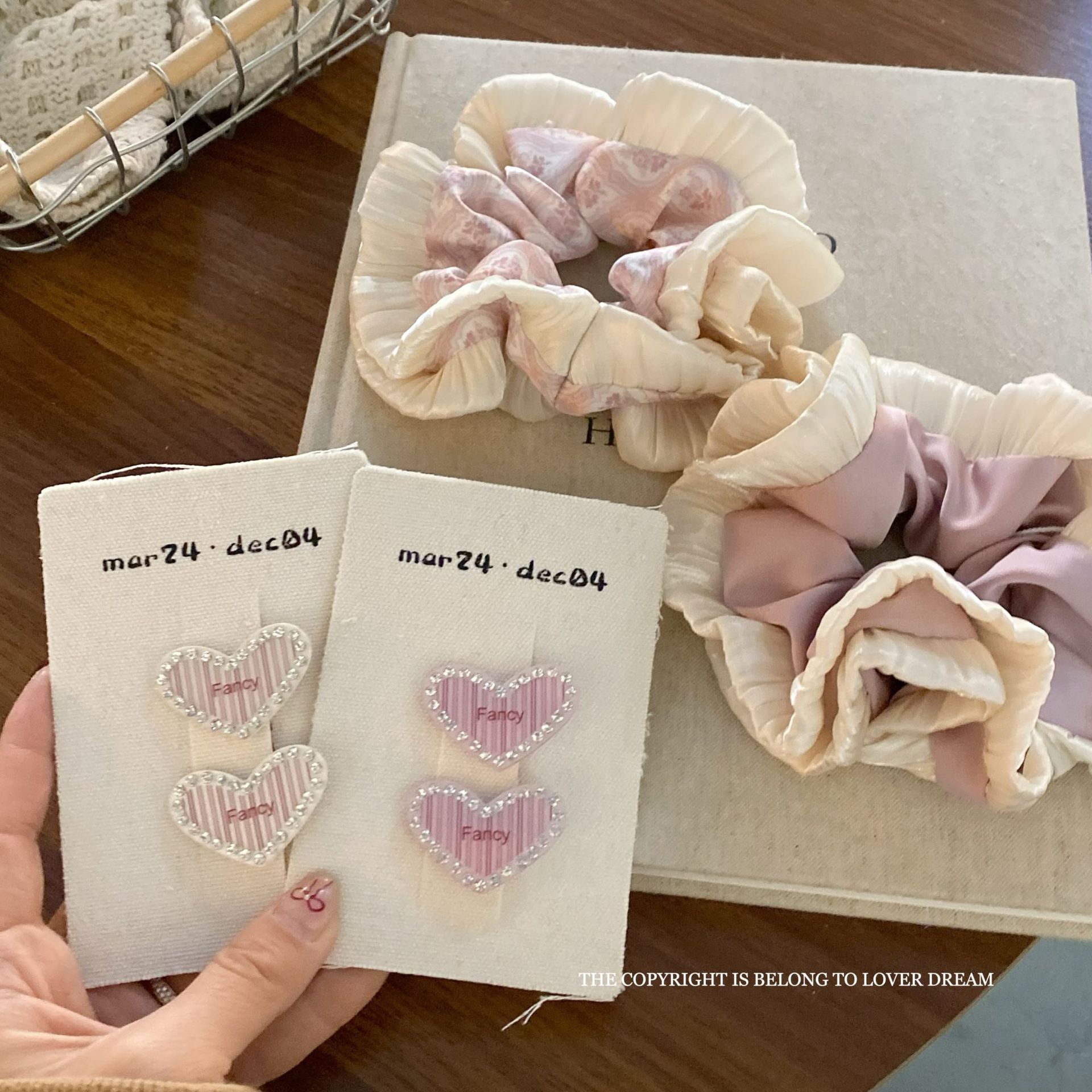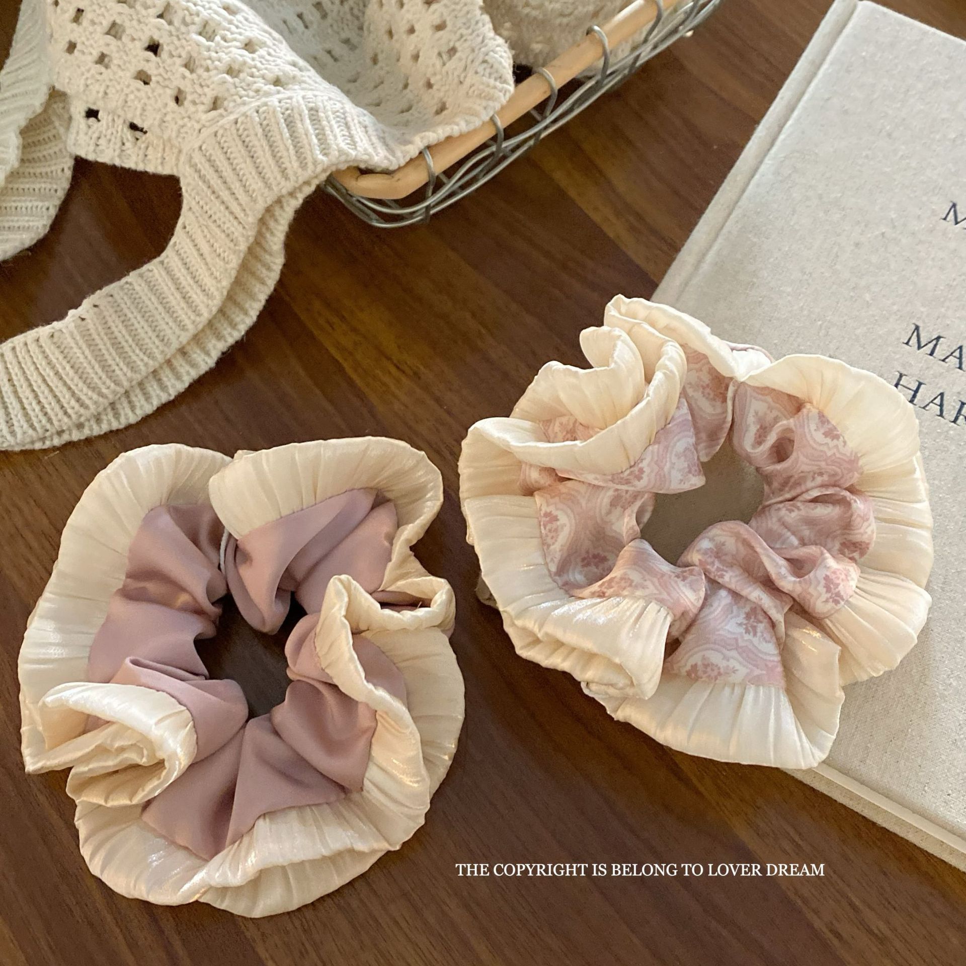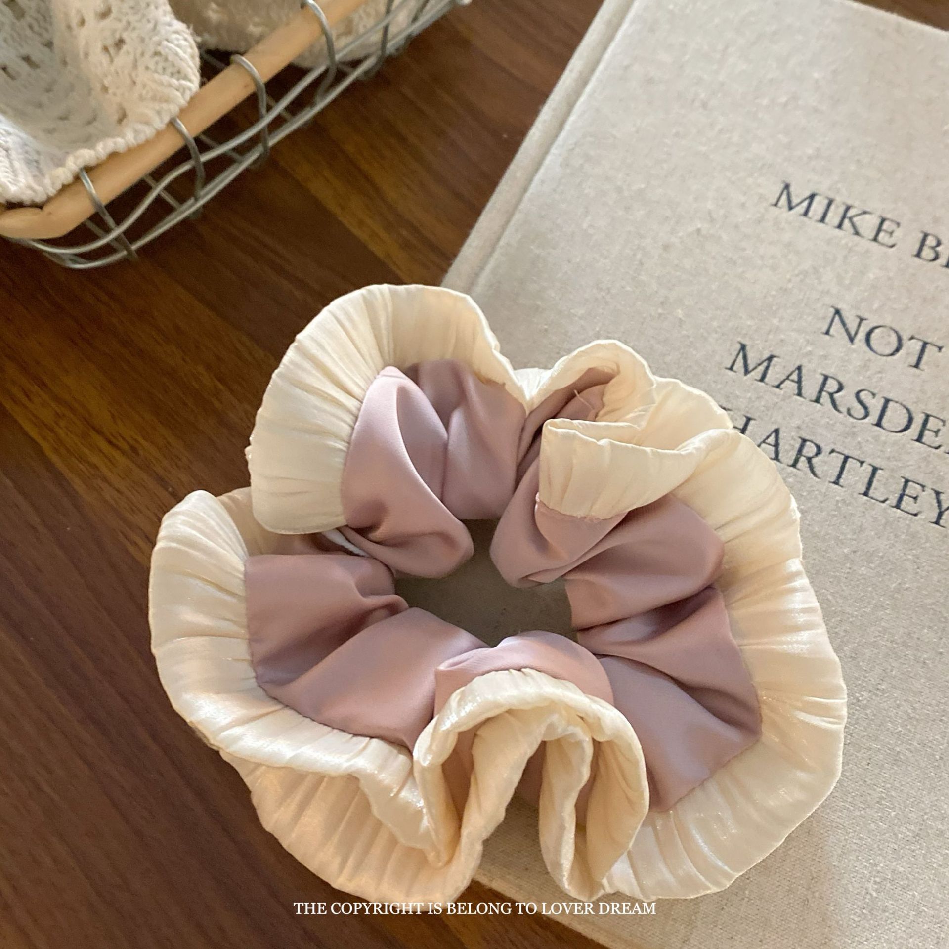 pink wooden ear satin large intestine ring hair ring