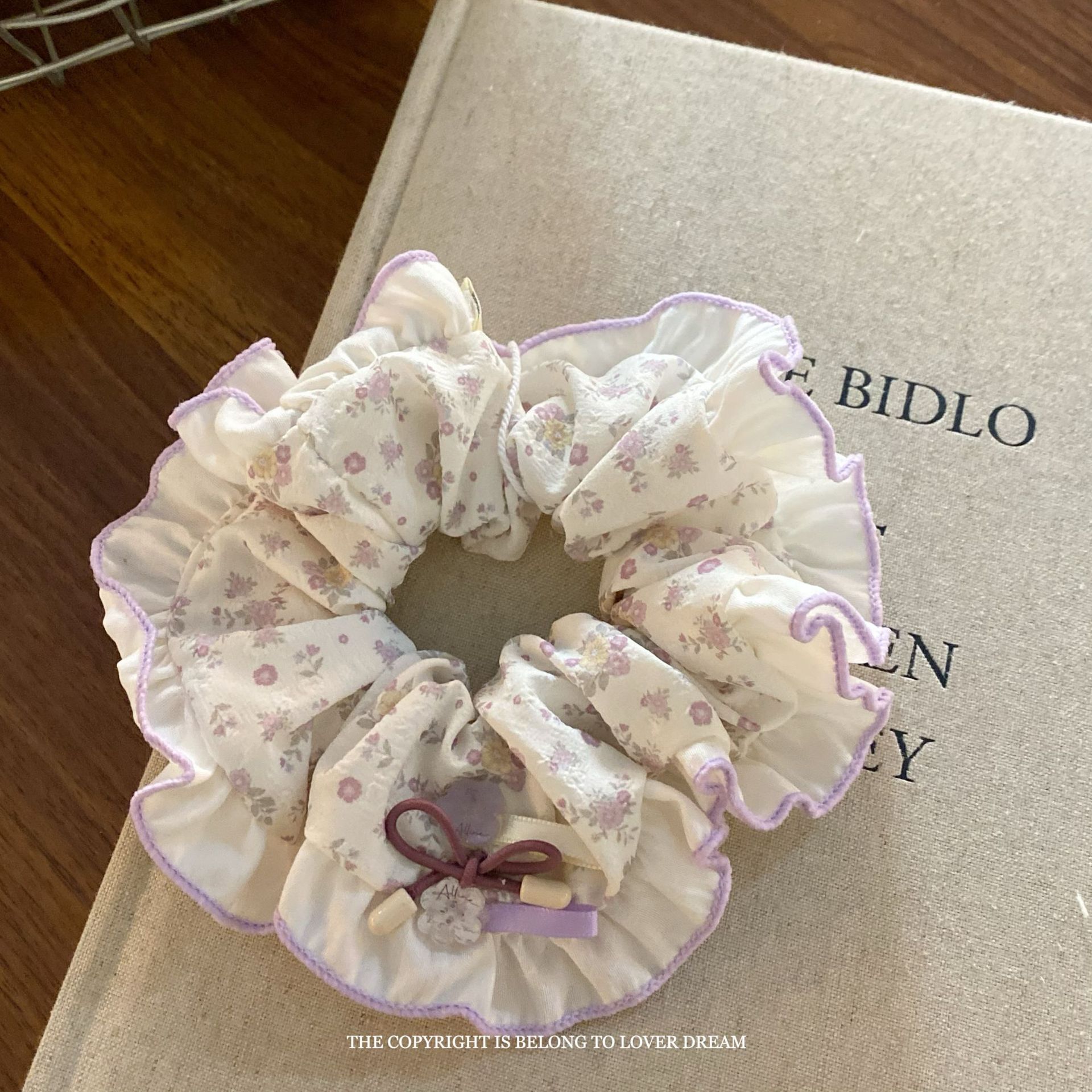 purple floral button bow large intestine ring hair ring
