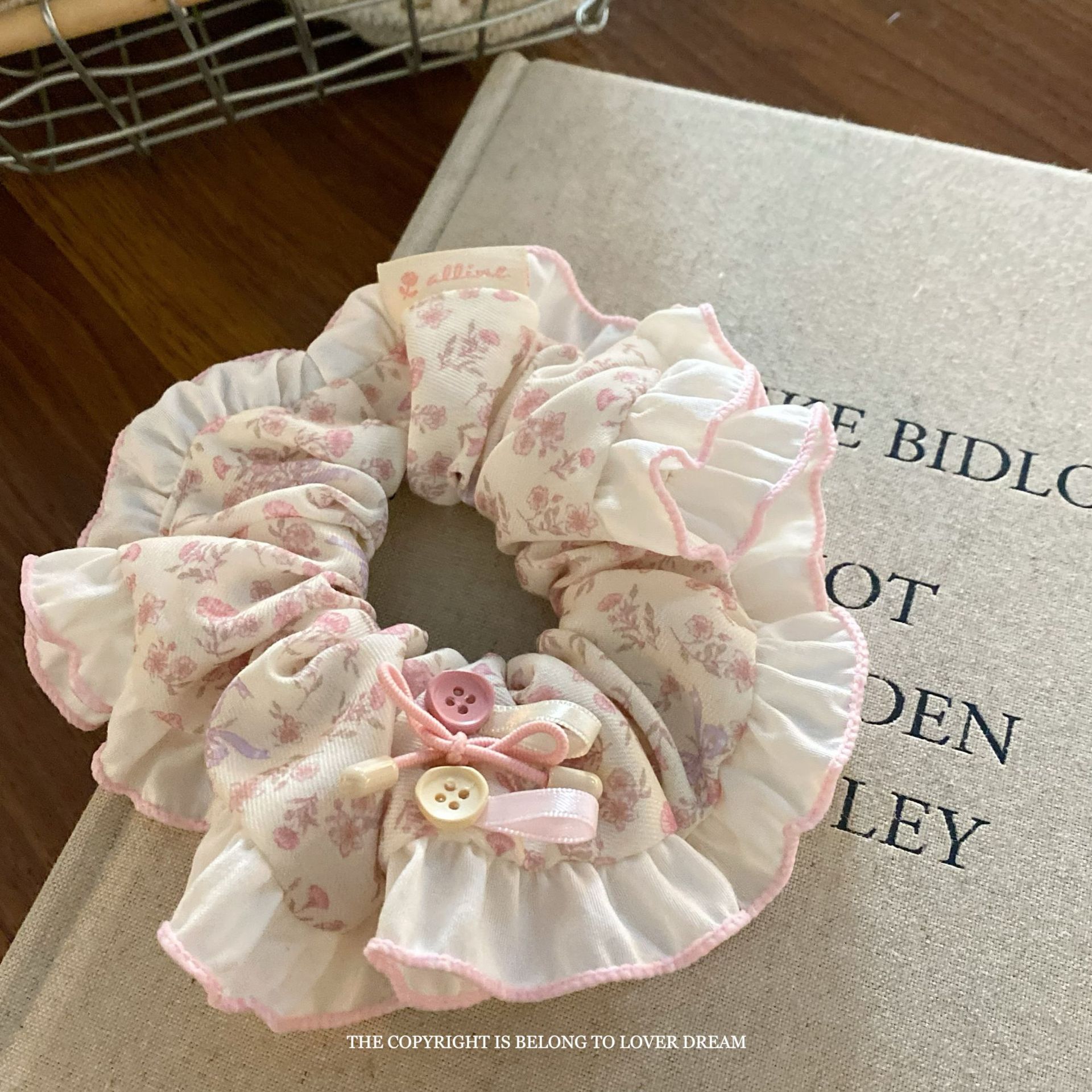 pink floral button bow large intestine ring hair ring