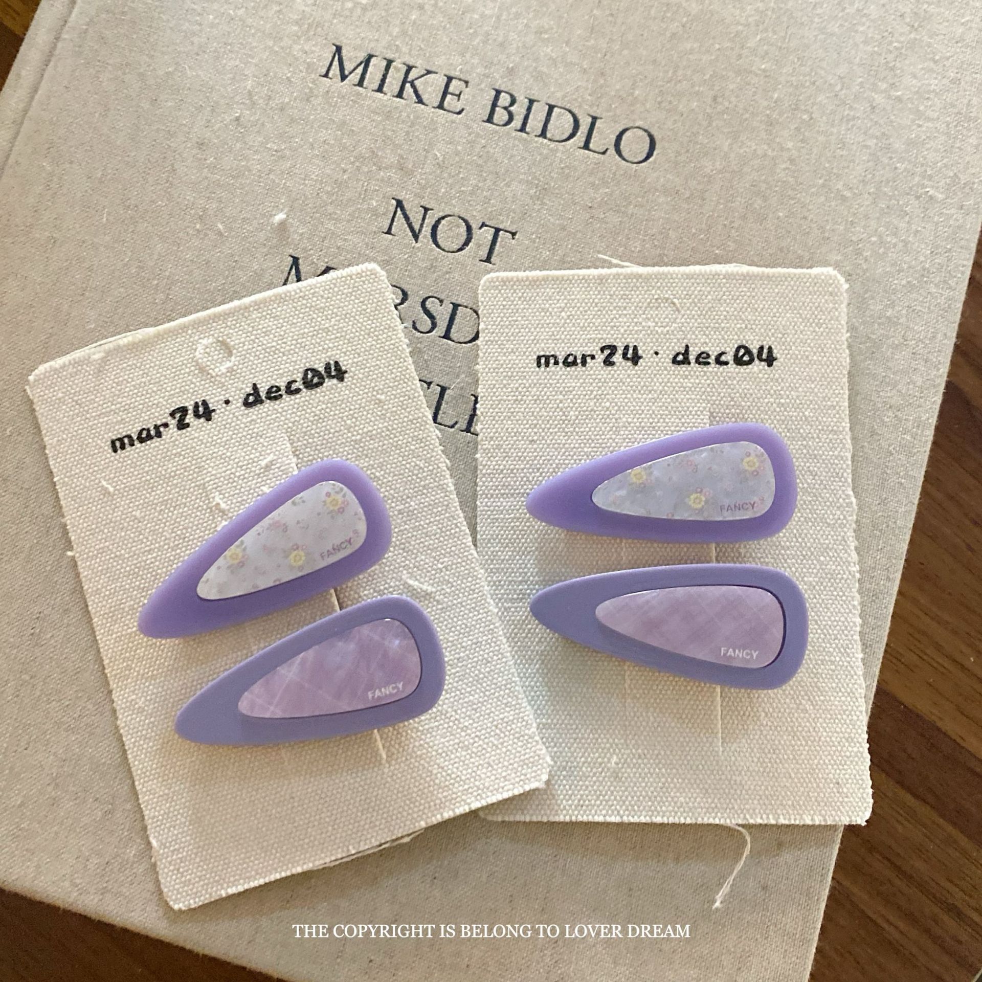 purple droplet double color acrylic color duckbill clip suit