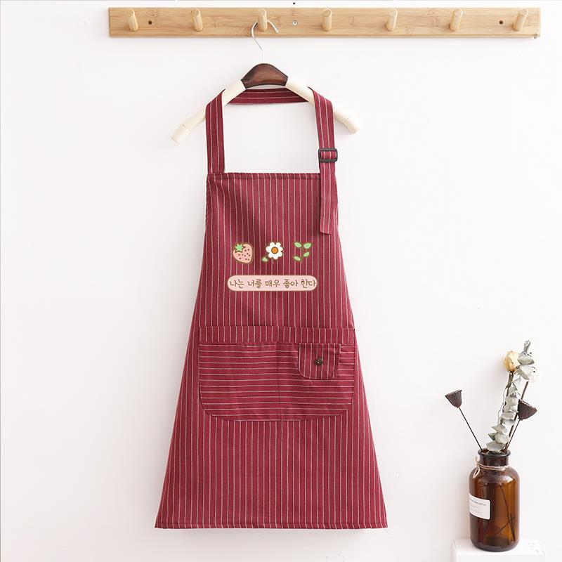 japanese cute cotton double-layer apron women's waterproof oil-proof kitchen cooking clerk work clothes overclothes logo printing