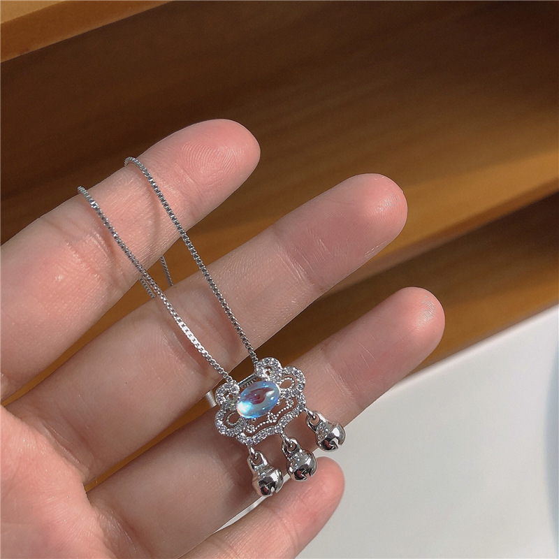 moonstone longevity lock bell necklace