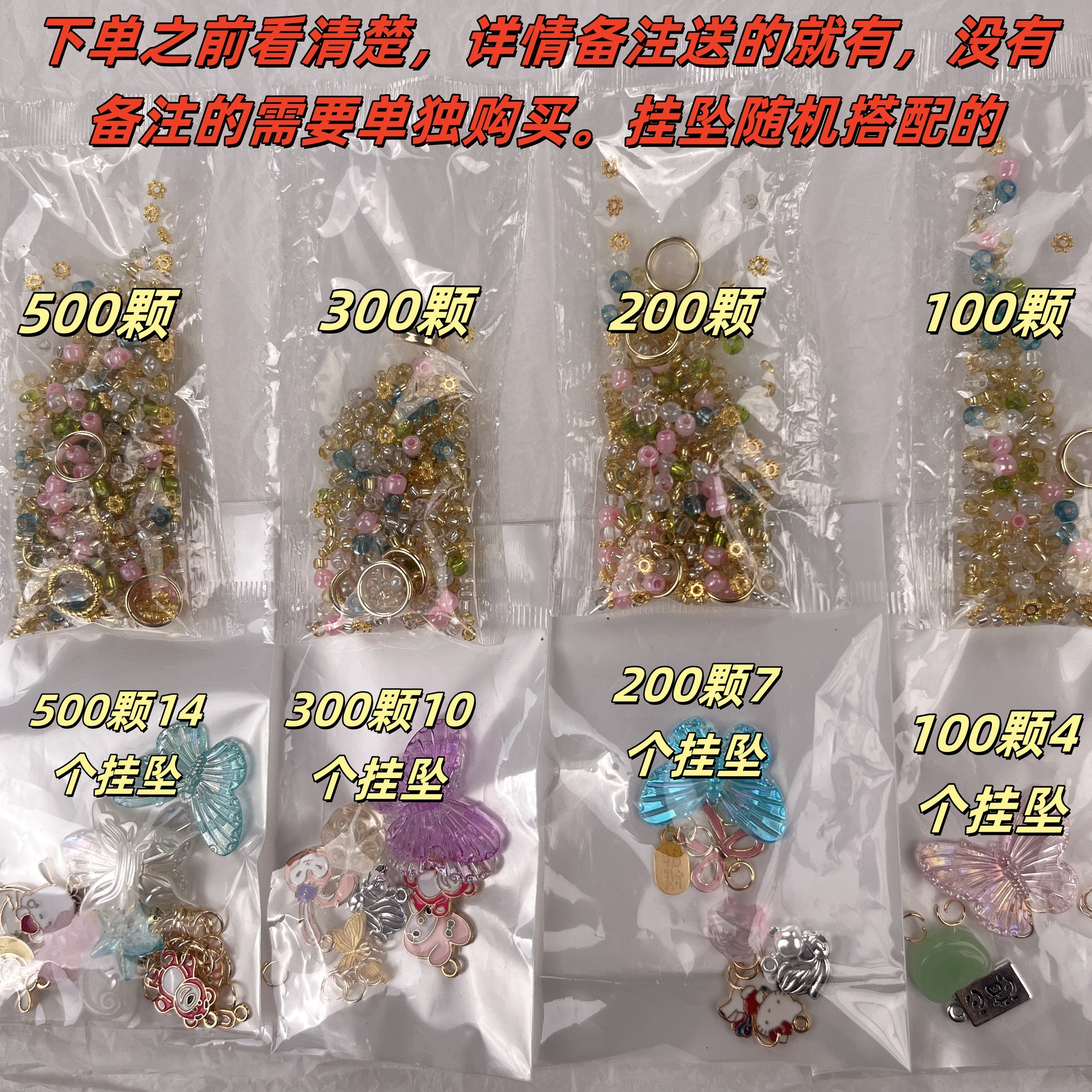 spacer beads 500 pcs get 14 random pendant