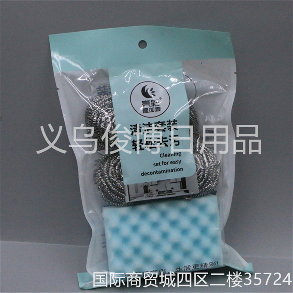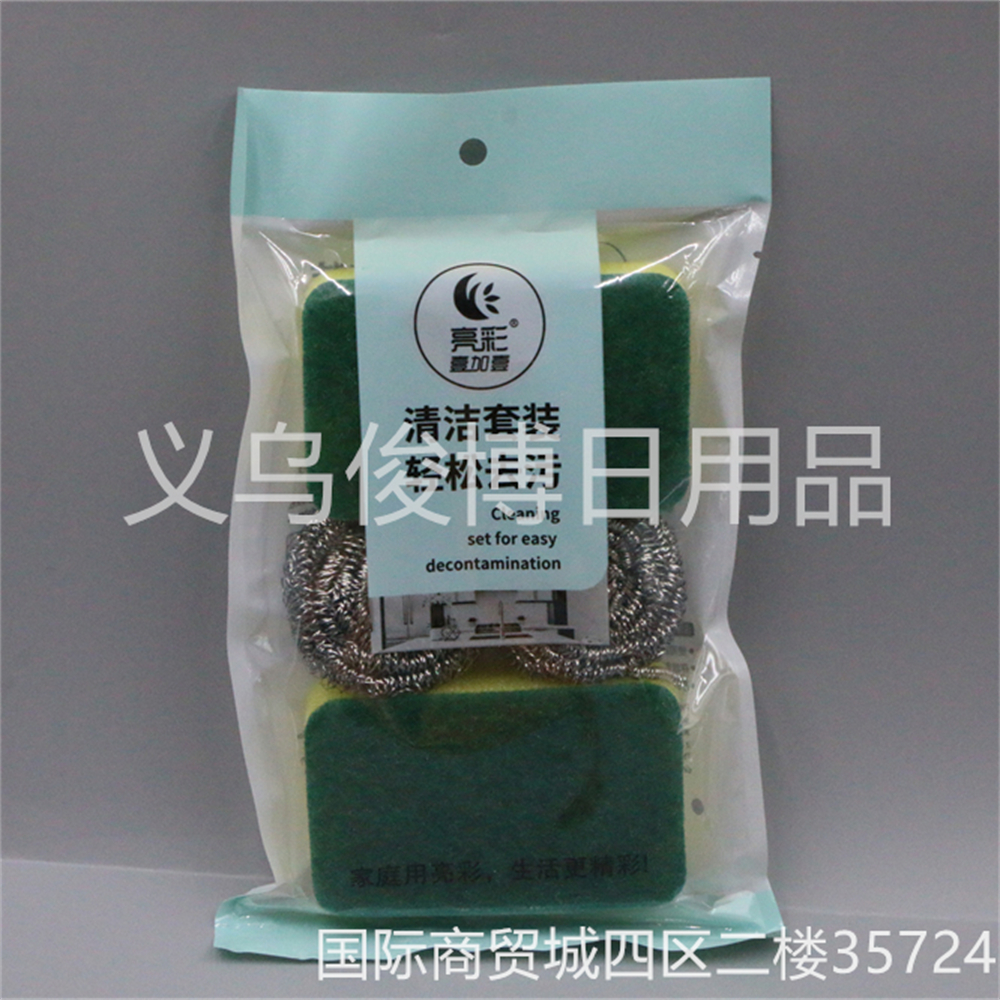 spong mop dishwashing spong mop washing king steel wire ball combination suit kitchen cleaning ball suit 中文版