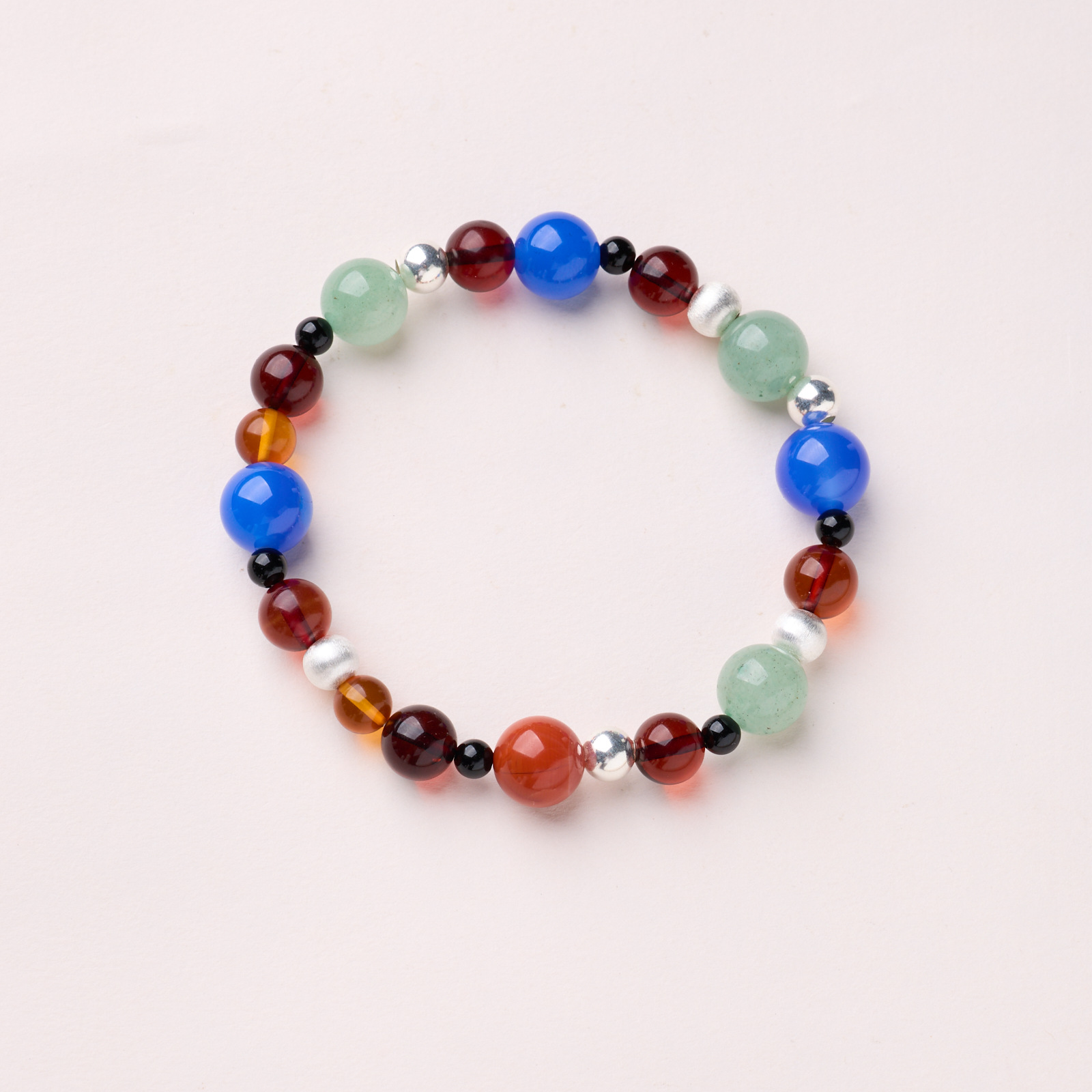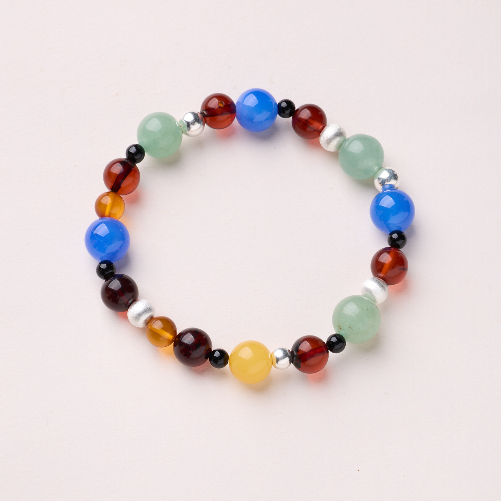 8mm blood amber sterling silver drawing beads multi-treasure bracelet (beeswax)