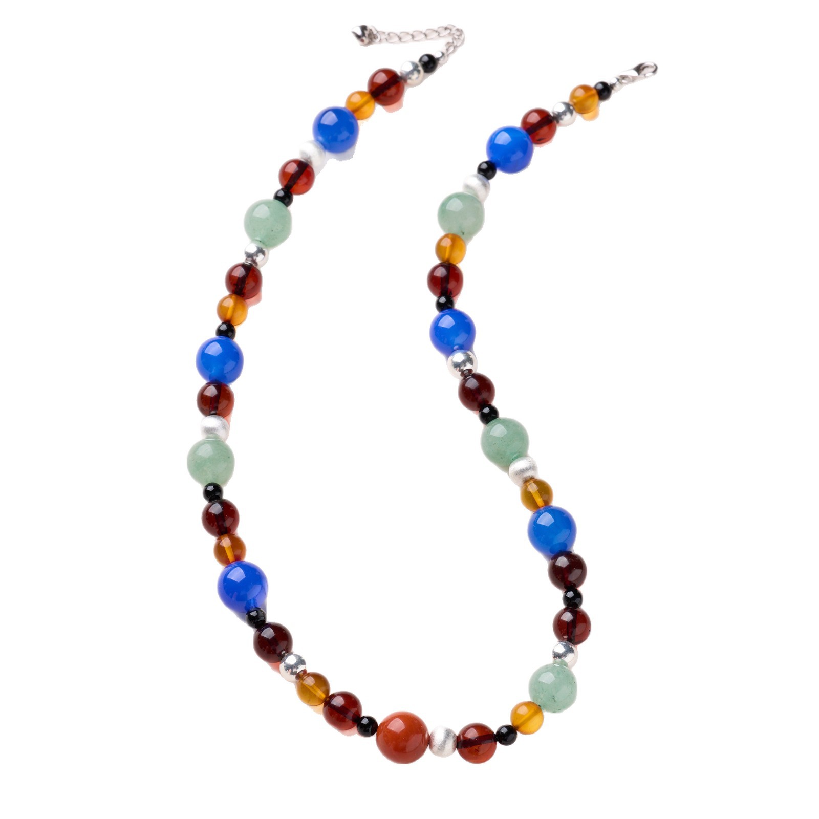 8mm blood amber brushed silver beads full of meat southern red agate multi-treasure necklace