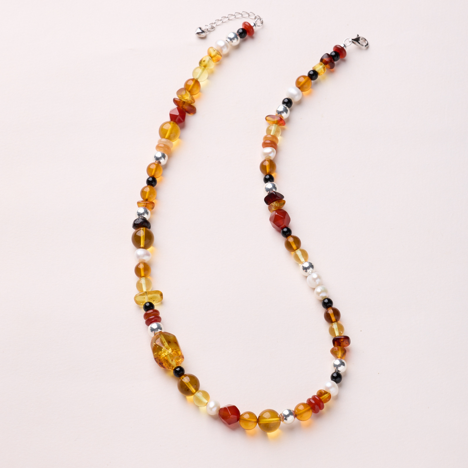 6mm golden amber freshwater pearl piebald amber with shape sterling silver necklace