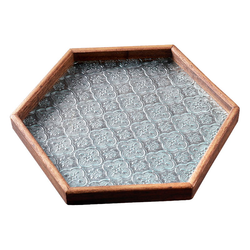 2321b-0201 quadrangle begonia glass tray ---- wood color