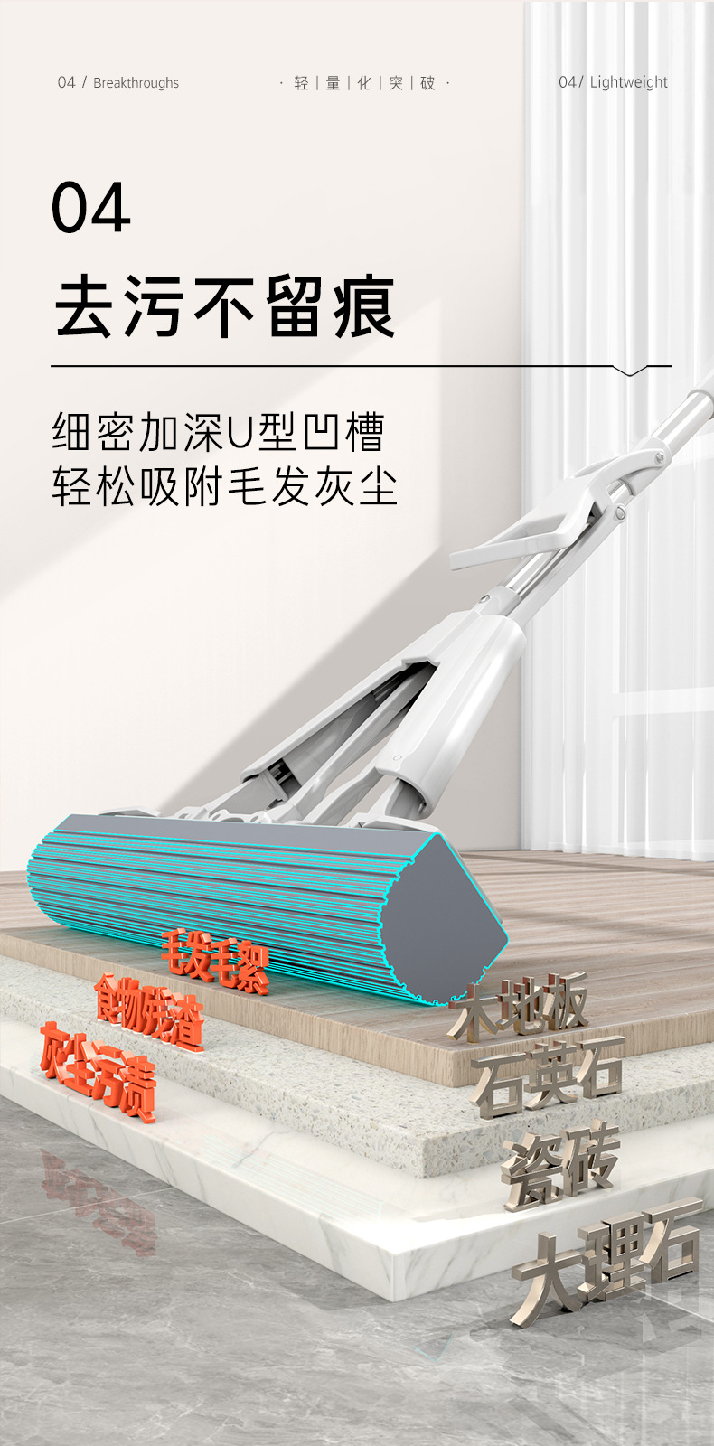 folding plastic cotton mop 40cm (4 heads in total)
