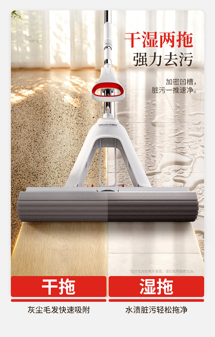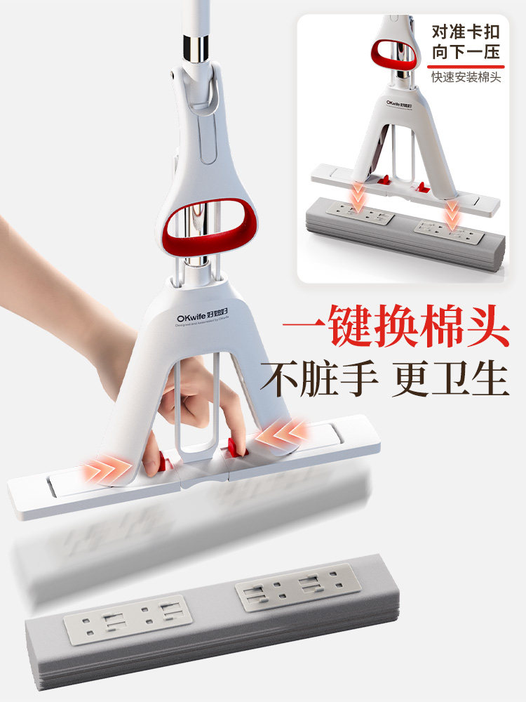 okaywife fold pva mop household lazy mopping hand wash-free sponge head absorbent 2025 new mop