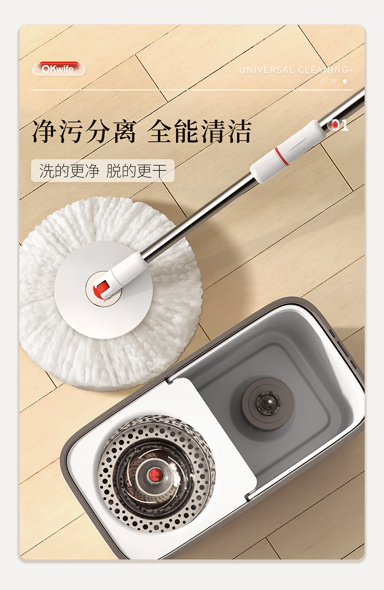 okaywife rotating mop extra thick band barrel washing integrated 2025 new hand wash-free household mop mop