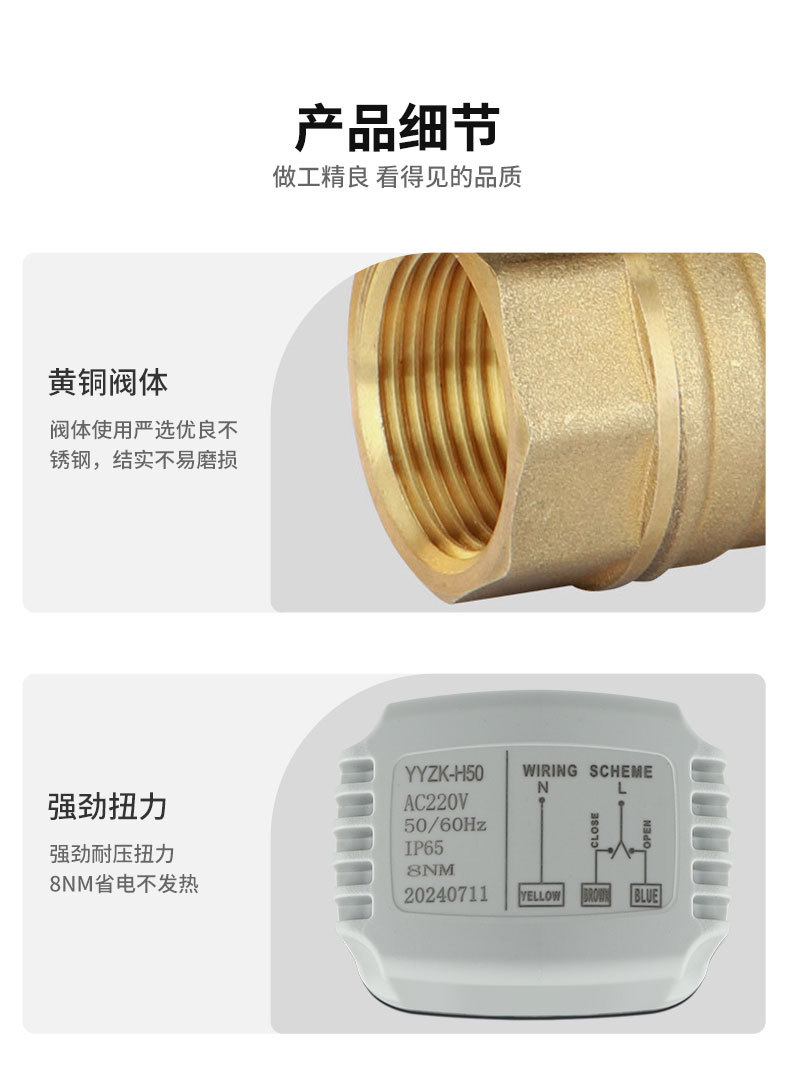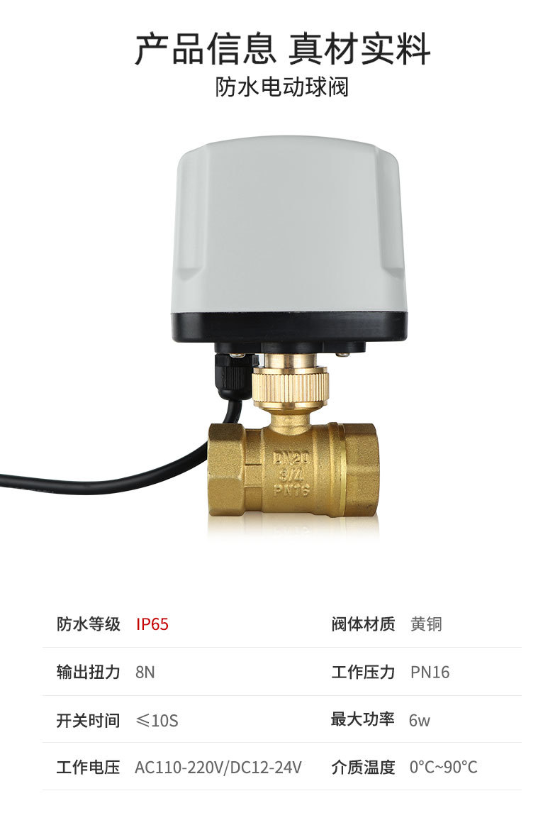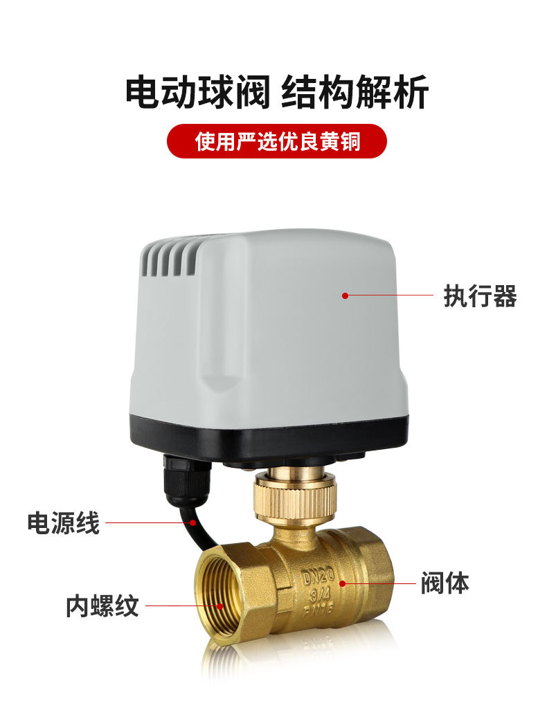220V 24管道开关铜球阀防水 AC220V DC24V马达配件电动球阀