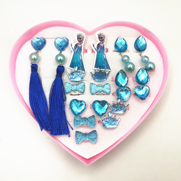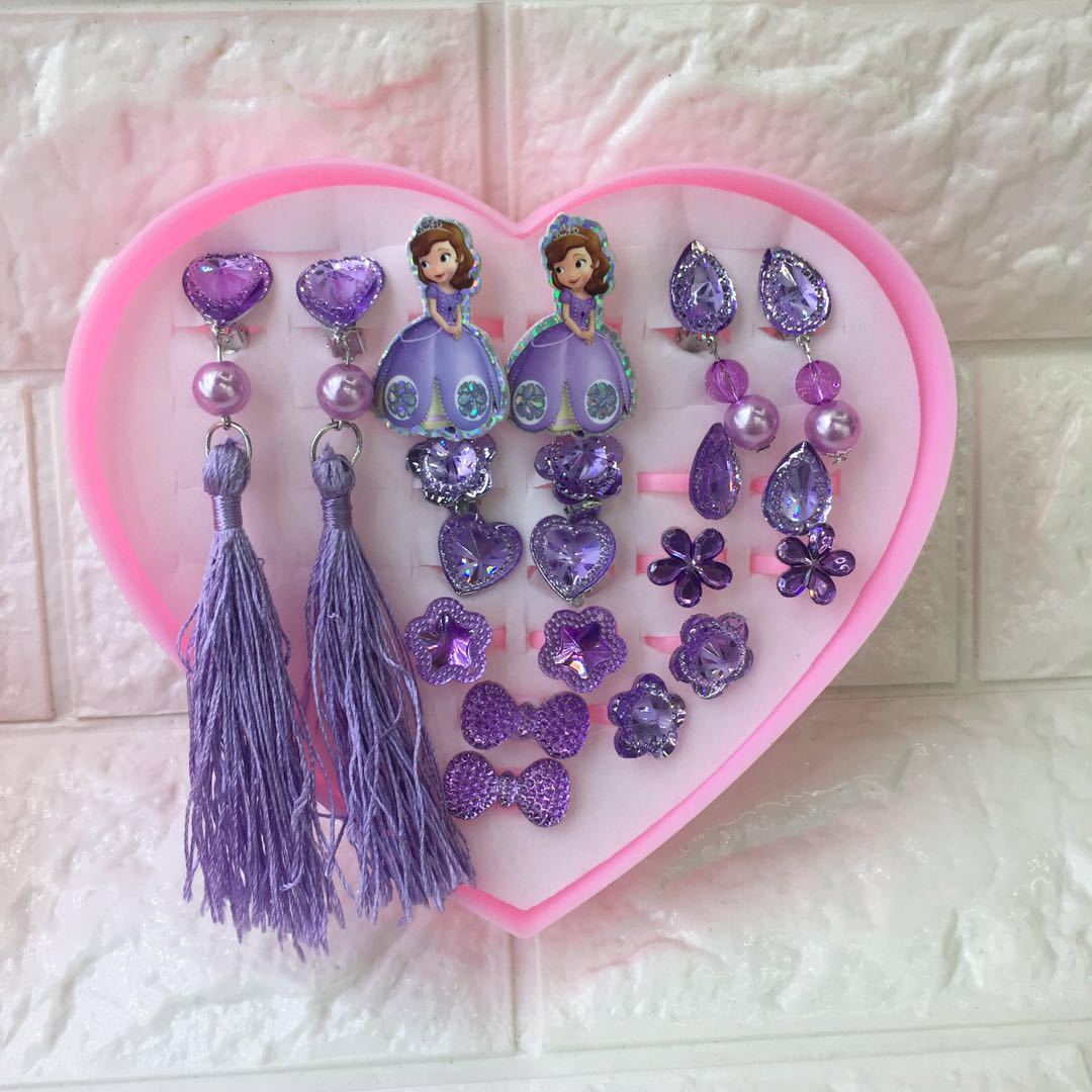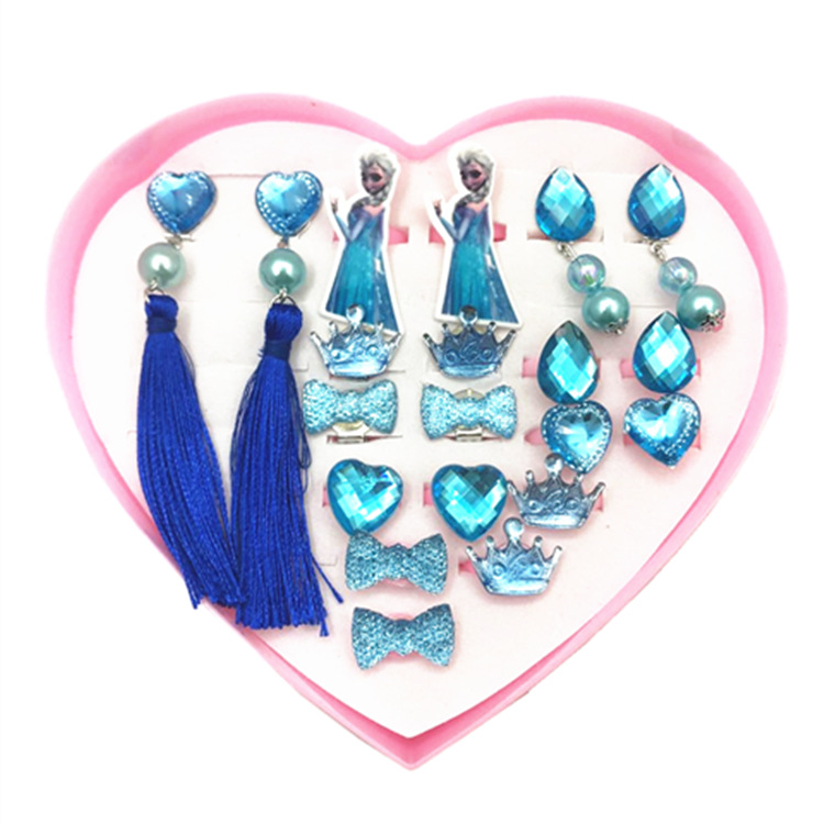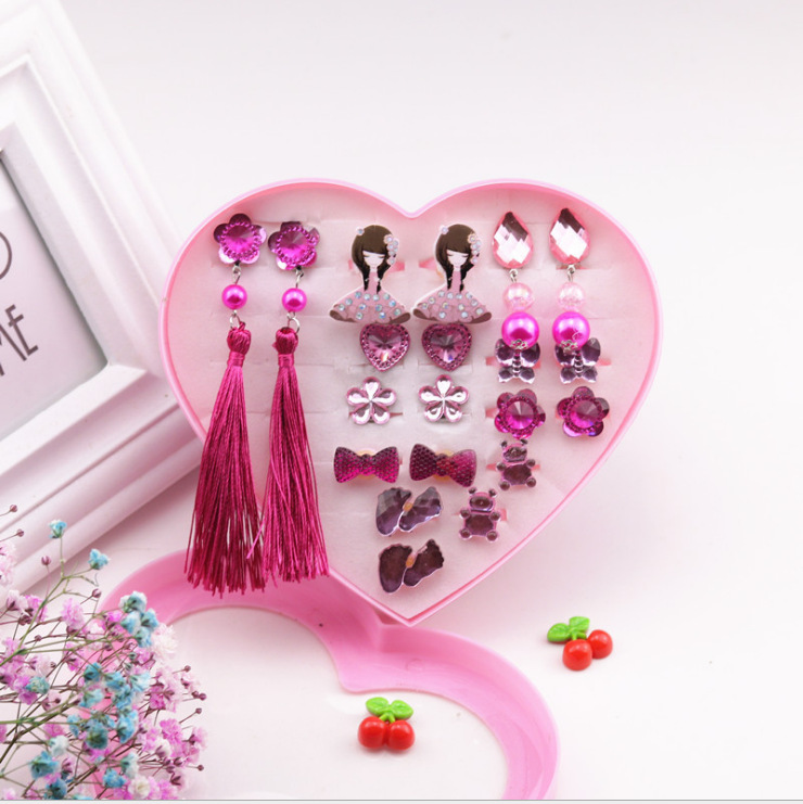 Packing: Two pairs of earrings and two pairs of ear clamps, twelve rings, all loose-packed in a transparent bag, and a heart-shaped gift box is included.