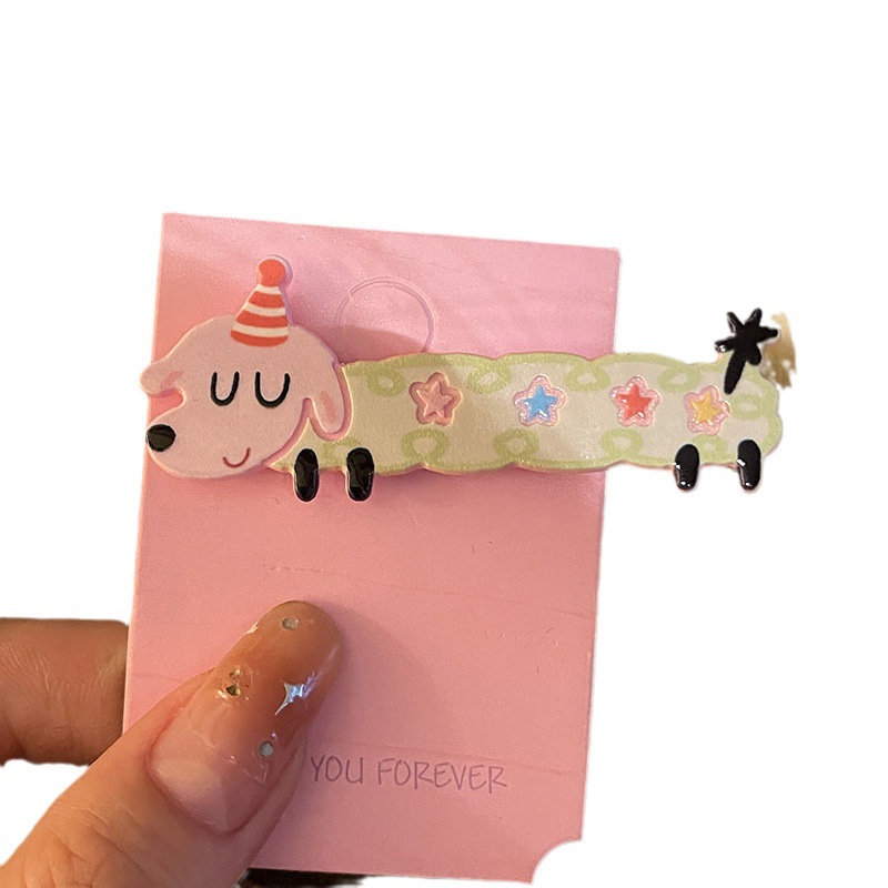 5# pink clothes white dot coffee dog hairpin
