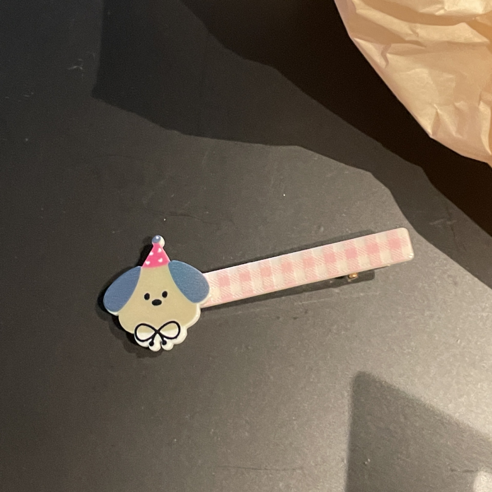 7# pink and white plaids purple dog hairpin
