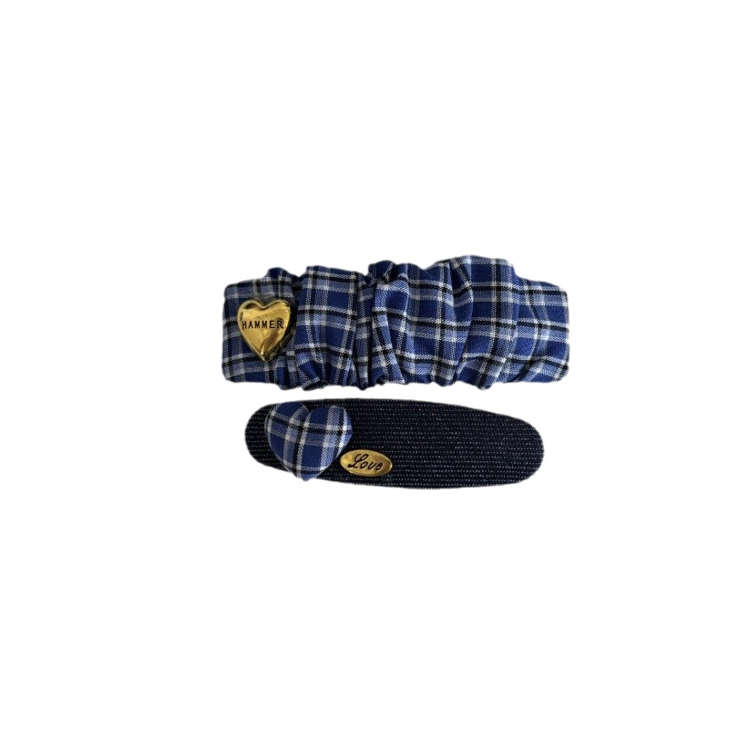5# blue striped pleated love heart-shaped hairpin pairs