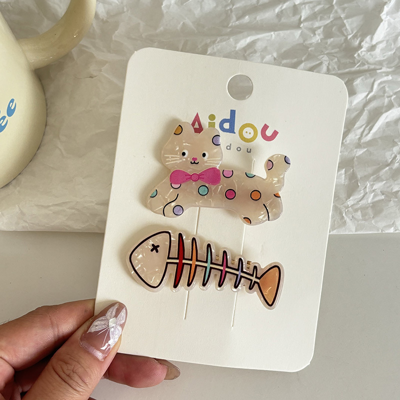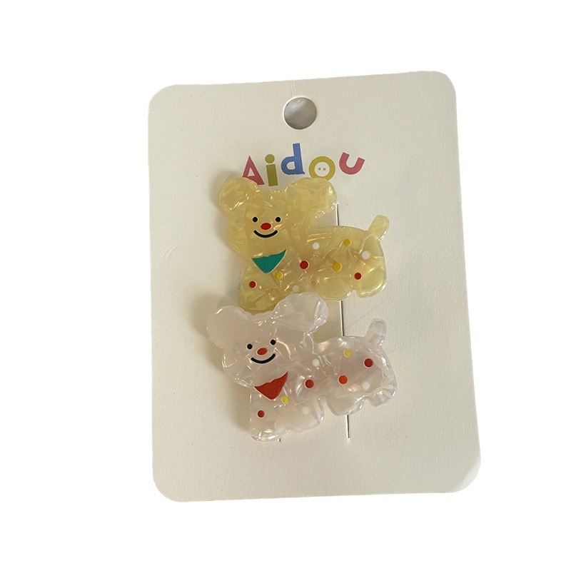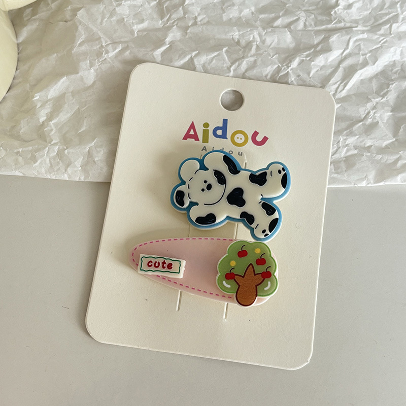5# black and white bear green tree barrettes two-piece set