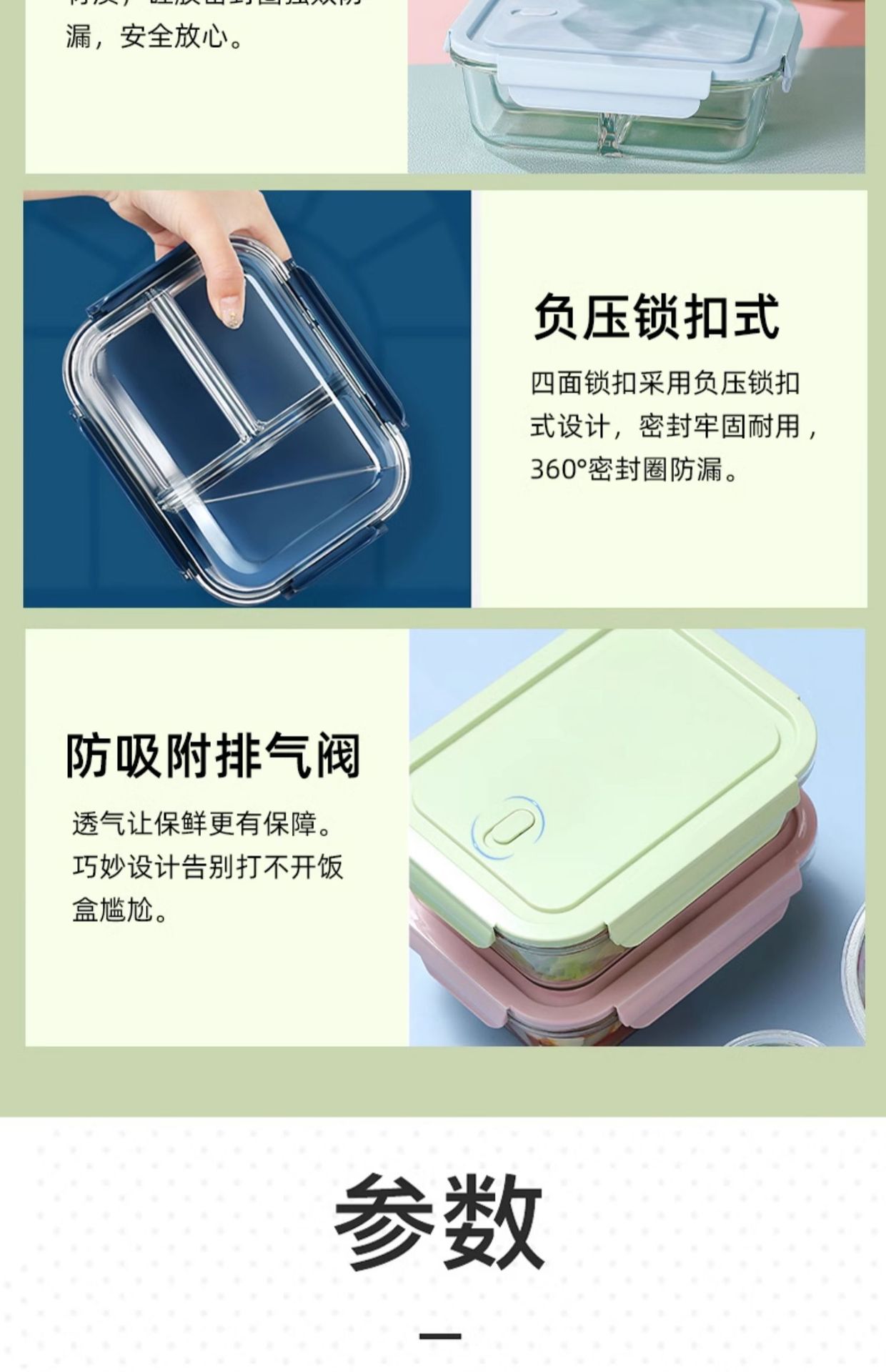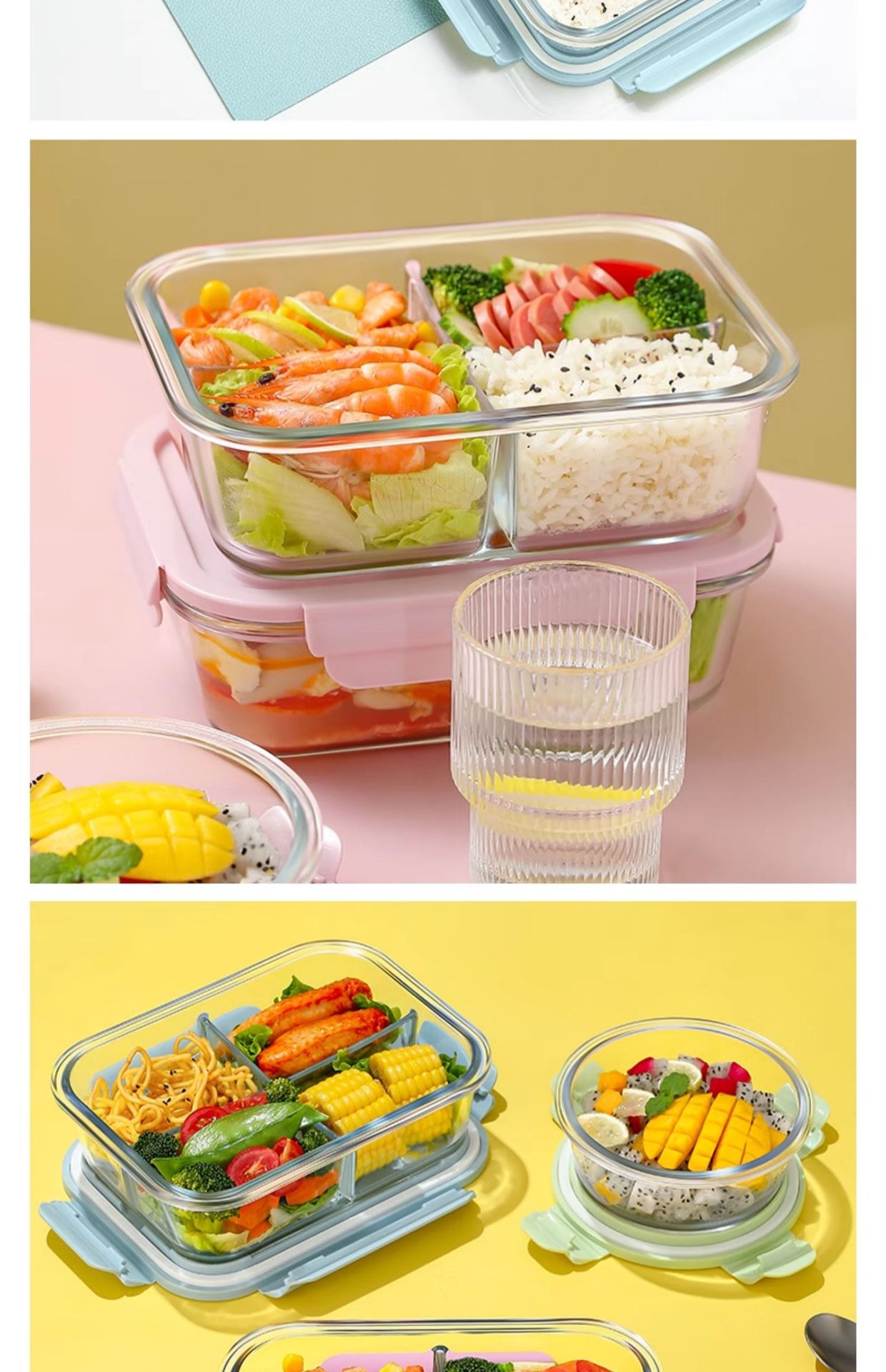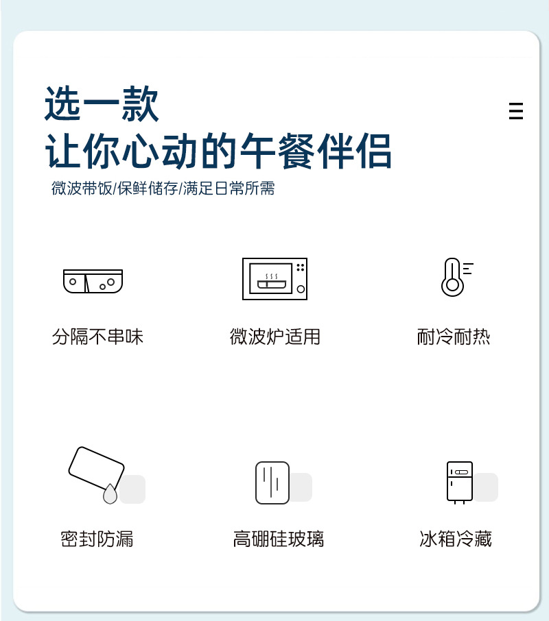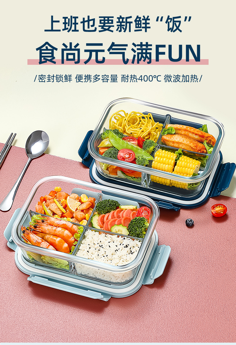 large length 3 separated 960ml + small round 420ml + panda lunch bag + tableware